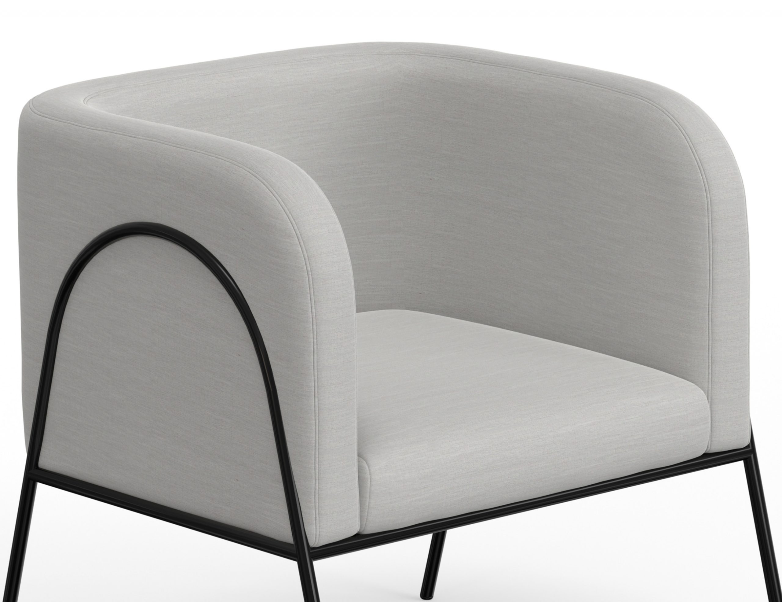 • This barrel chair not only provides a comfortable haven for reading but also adds a touch of modern sophistication to your space. Crafted with precision, it boasts an engineered wood frame supported by sleek black metal legs. The chair’s defining characteristic is its elegantly rounded back, which gracefully extends around the sides to double as embracing armrests, cocooning you in comfort and style