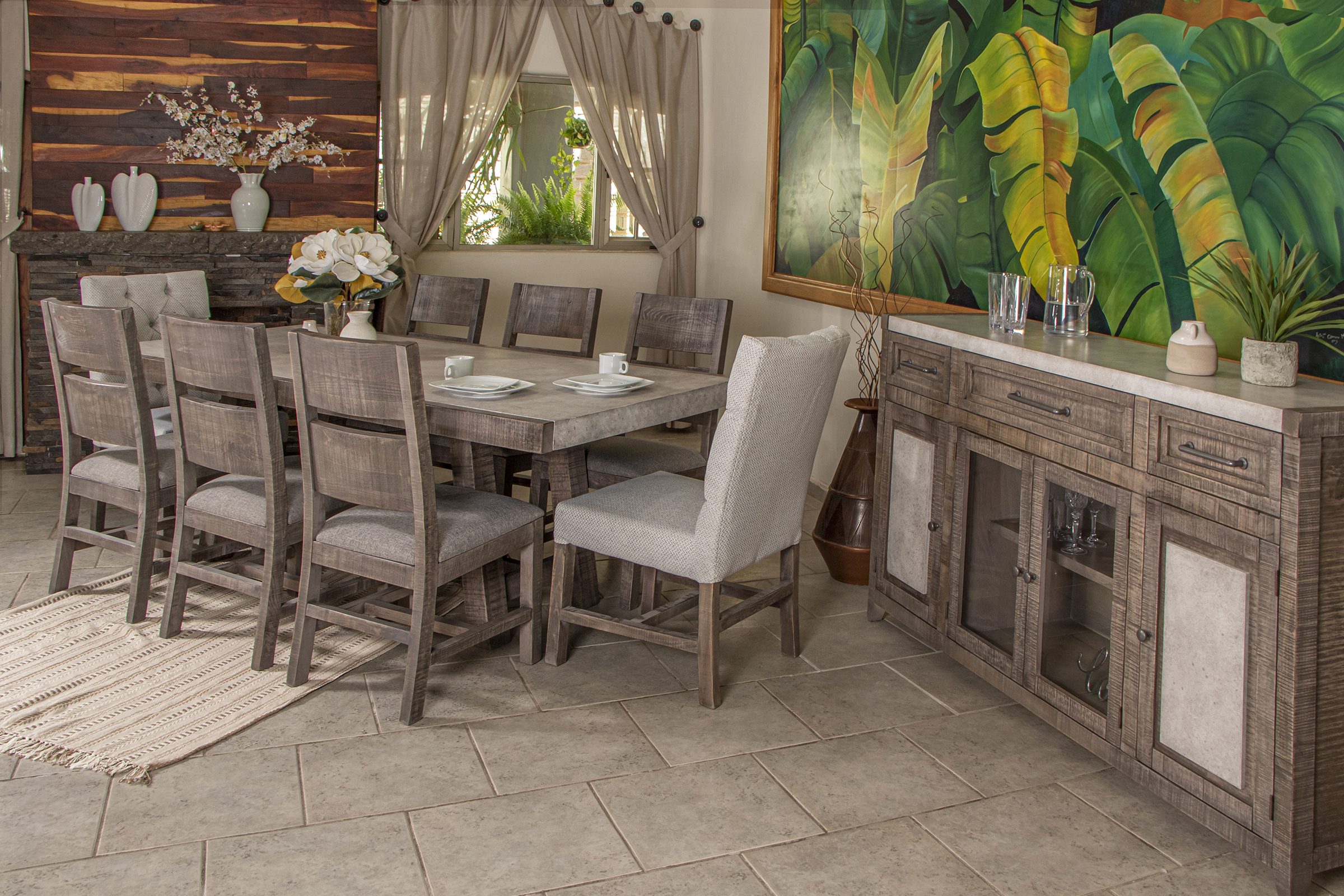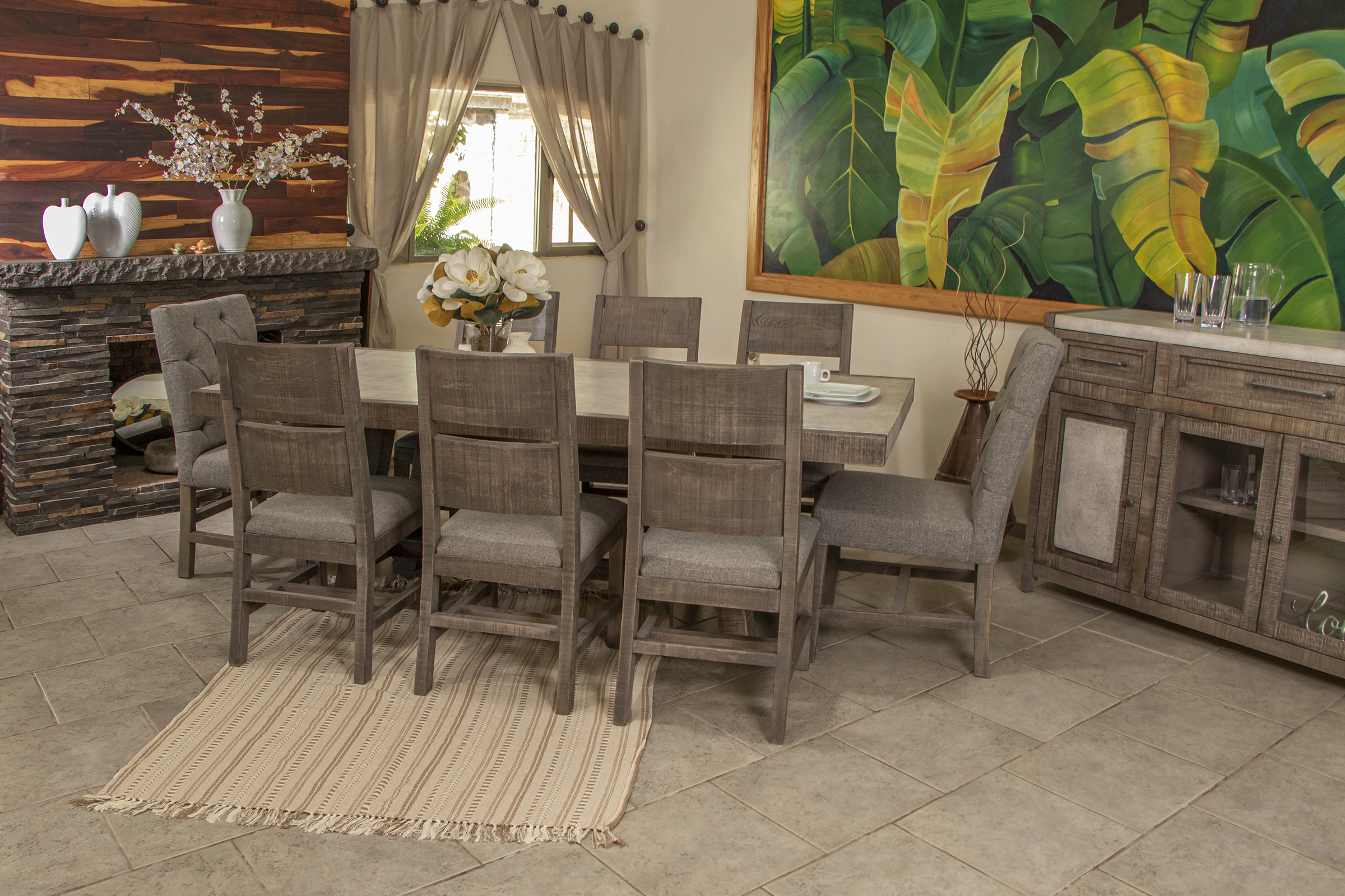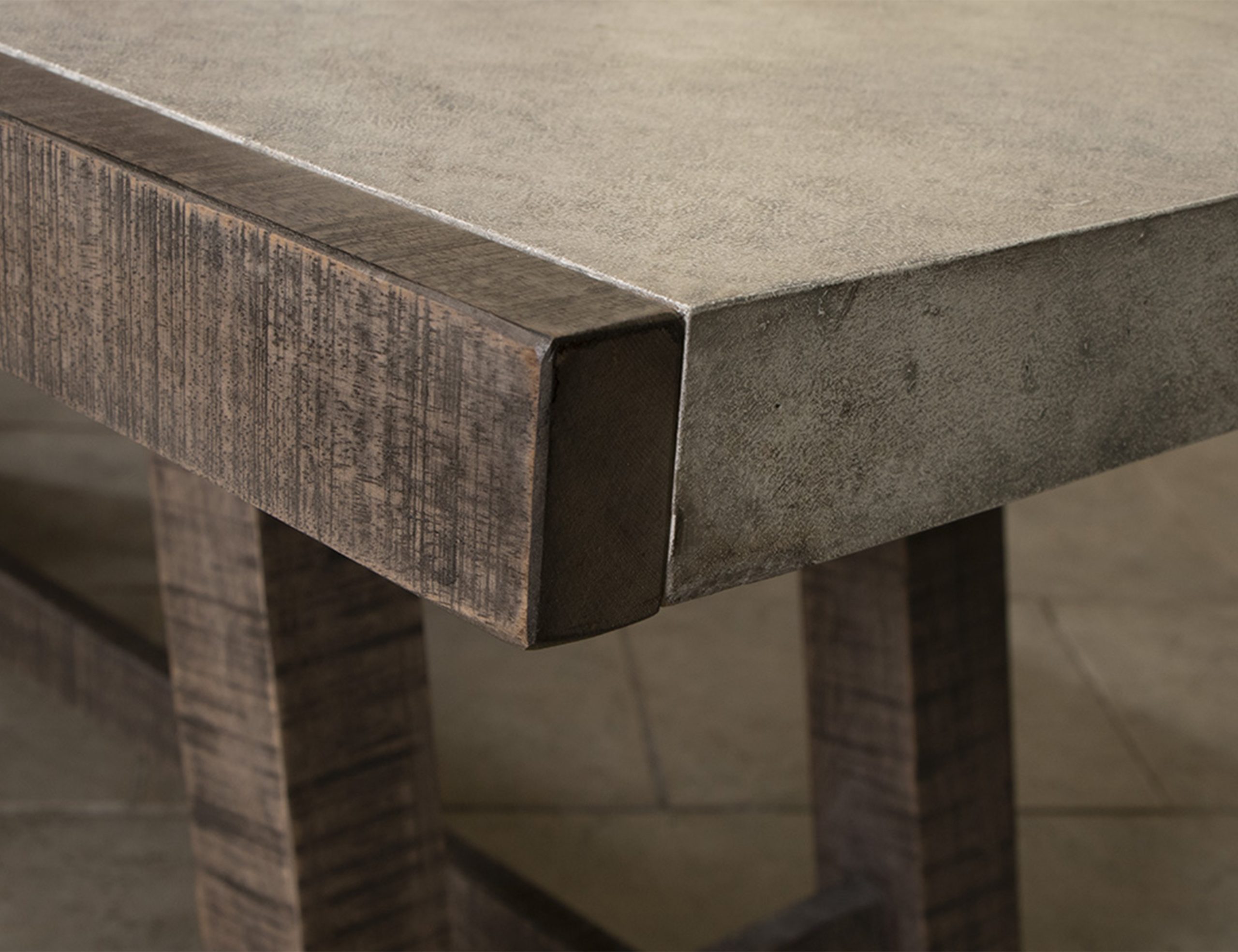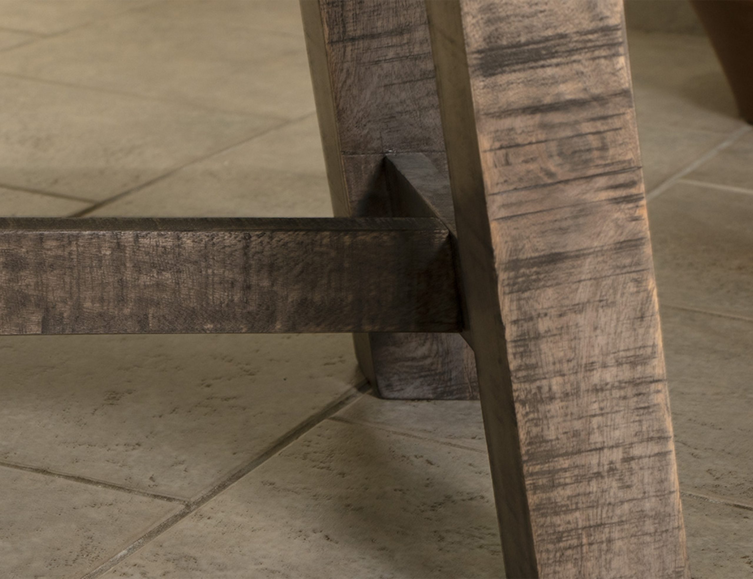 • This product features a weathered gray finish achieved through a multi-step lacquer process.
