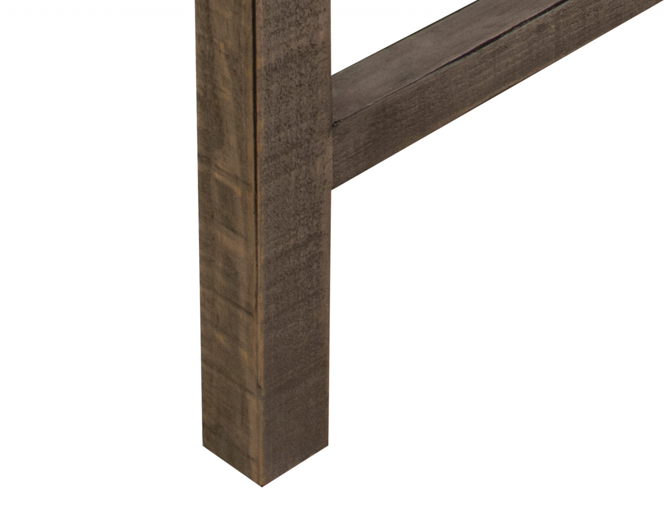 • Distressed brown finish is applied with a hand-rubbed technique in a multi-step process.