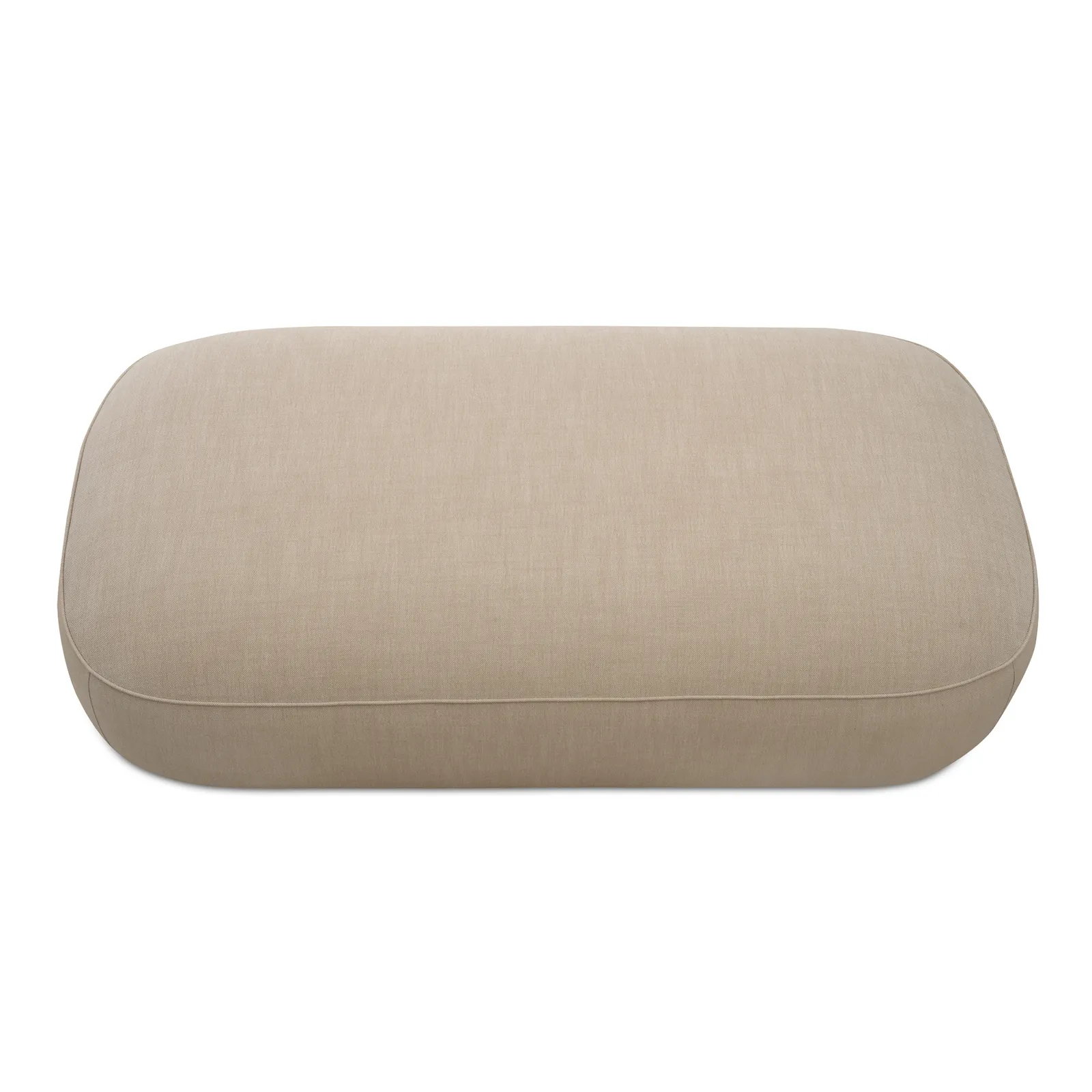 Doubling as a coffee table and seating option, the Marion Ottoman features a plump, curved design with detailed piping and a cleverly recessed base to create a floating appearance. Upholstered in C0 performance-treated fabric for stain resistance, this piece is a statement of lasting comfort.