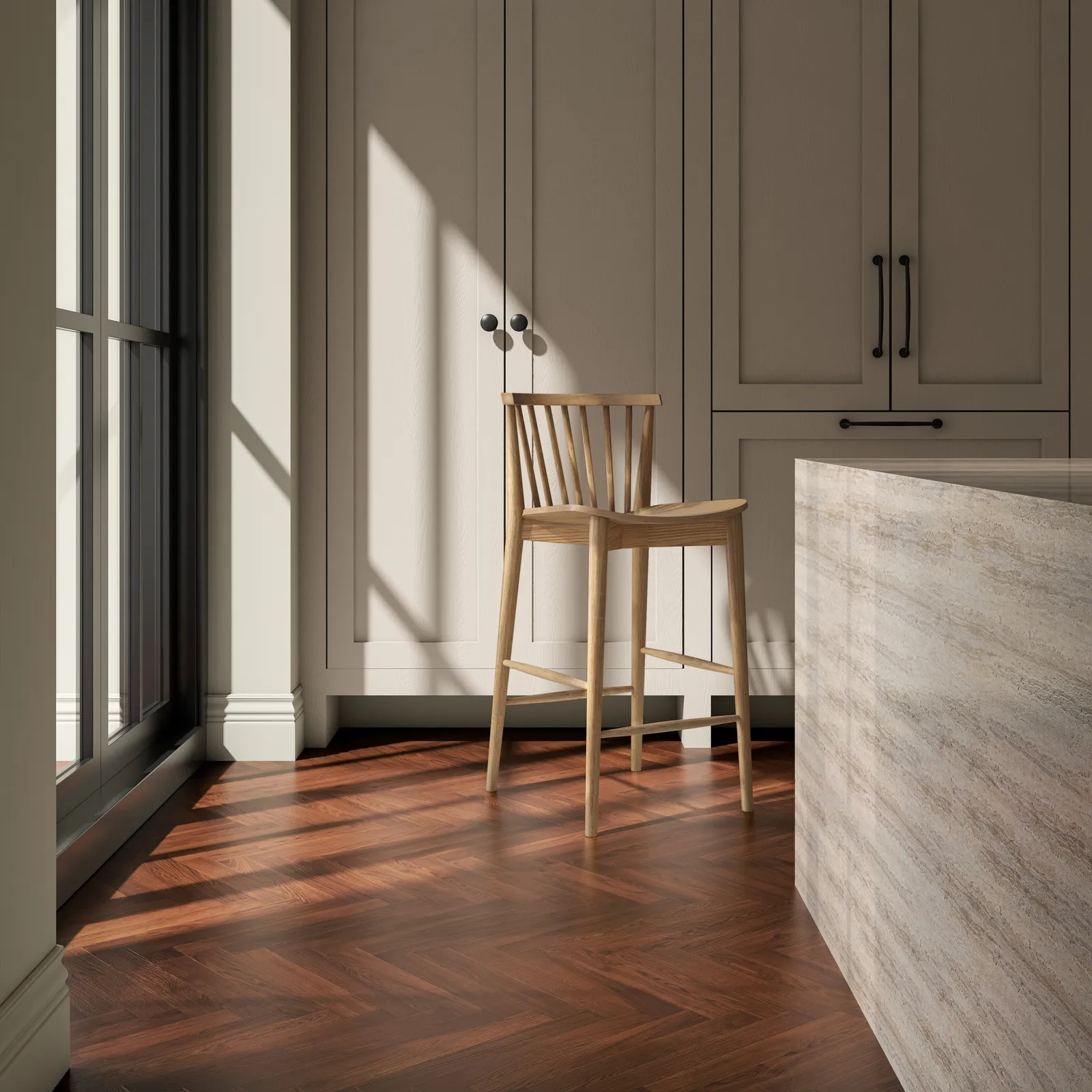 Crafted from solid oak, the Marly counter stool exudes warmth and character. This spindle-back chair’s graceful silhouette offers visual intrigue and ergonomic support, while the smaller scale ensures versatility. Sold in sets of two.