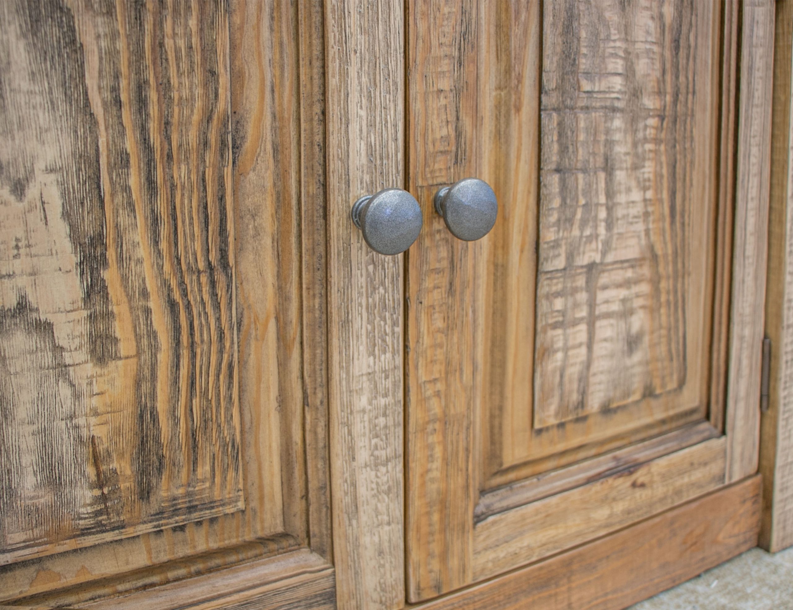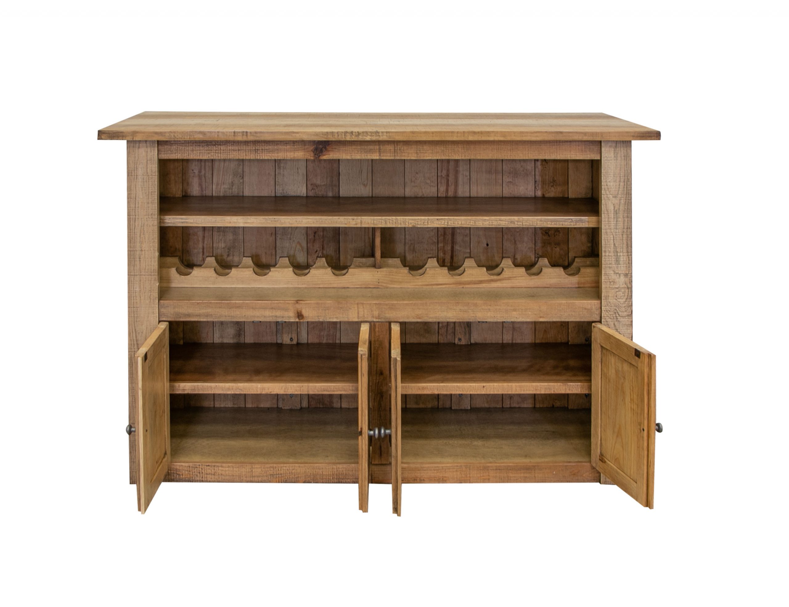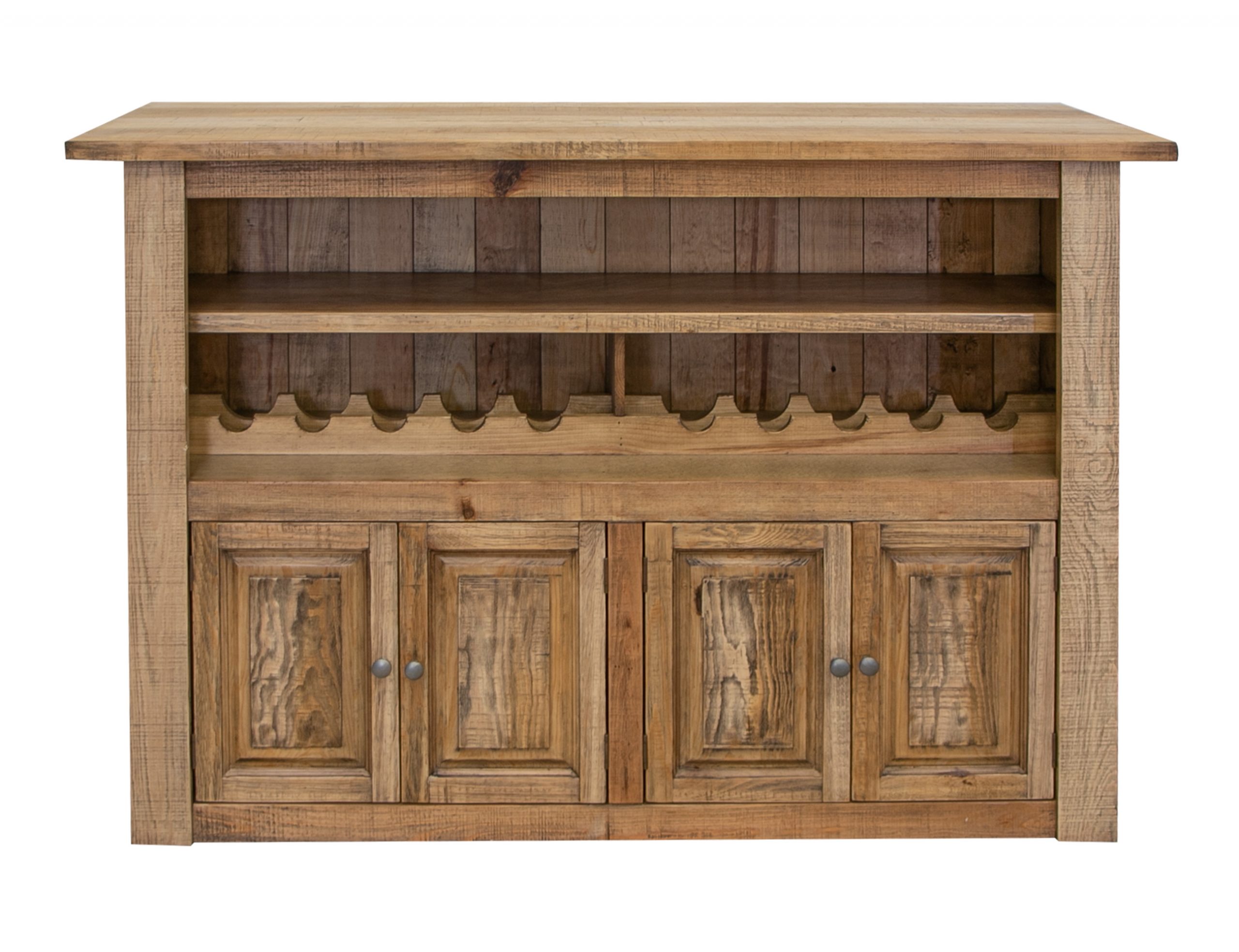 • Finish is achieved through a multi-step process in which pine is lightly distressed, and hand-applied two-tone lacquer in hues of light brown is used.