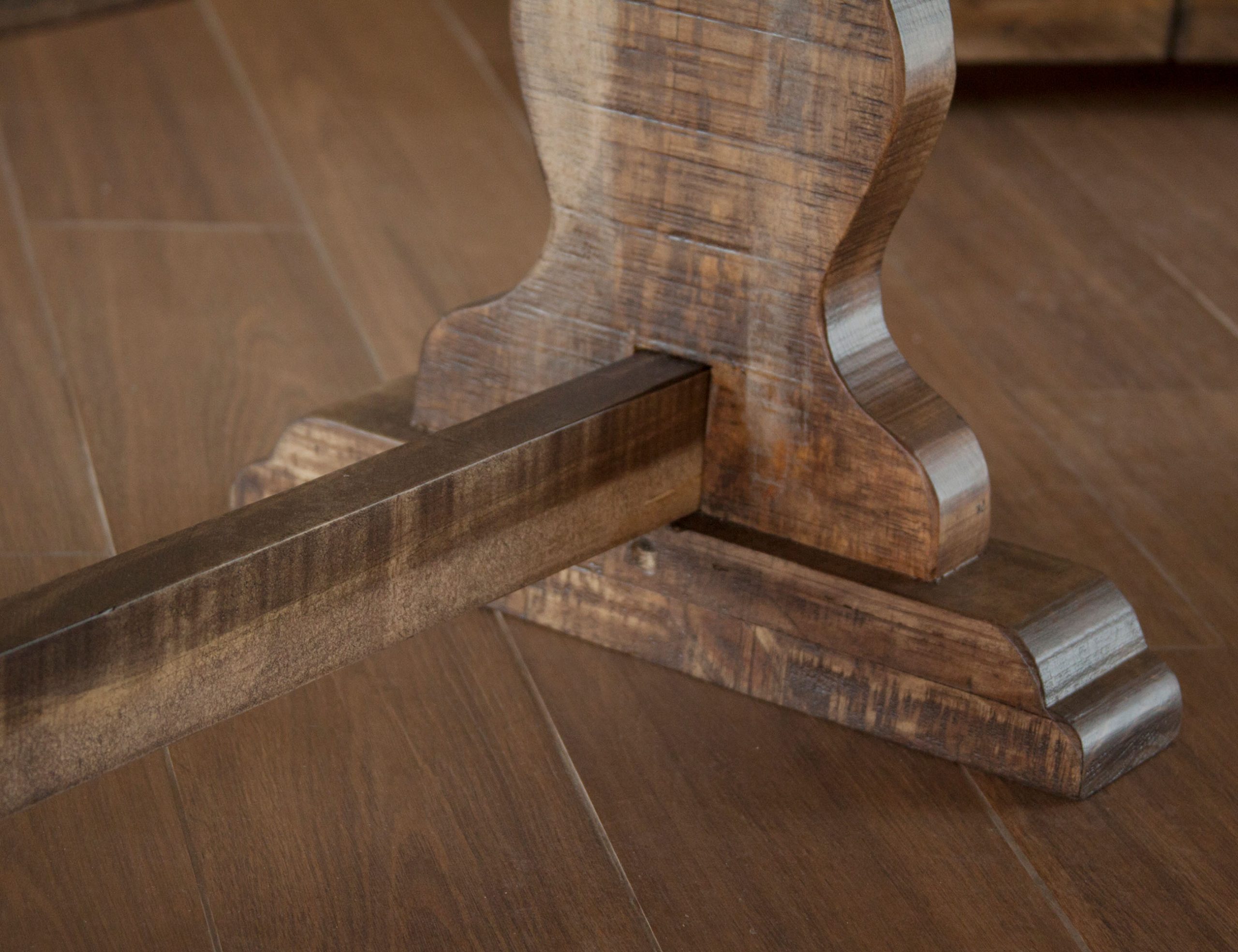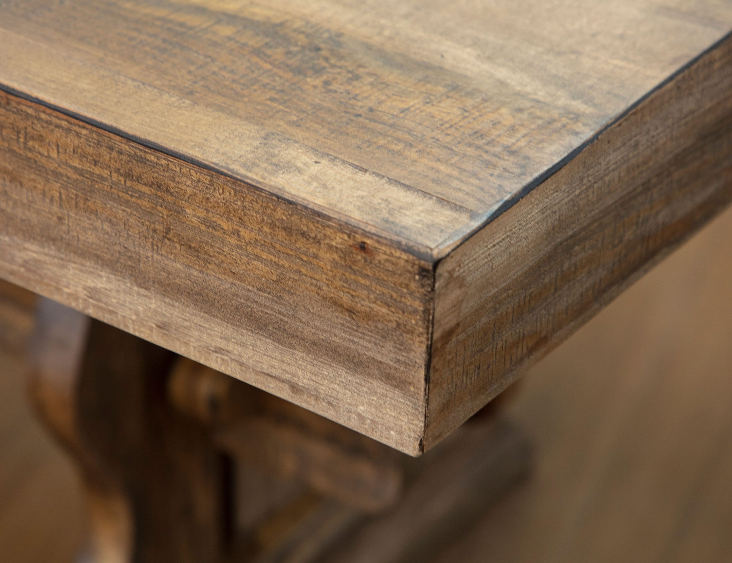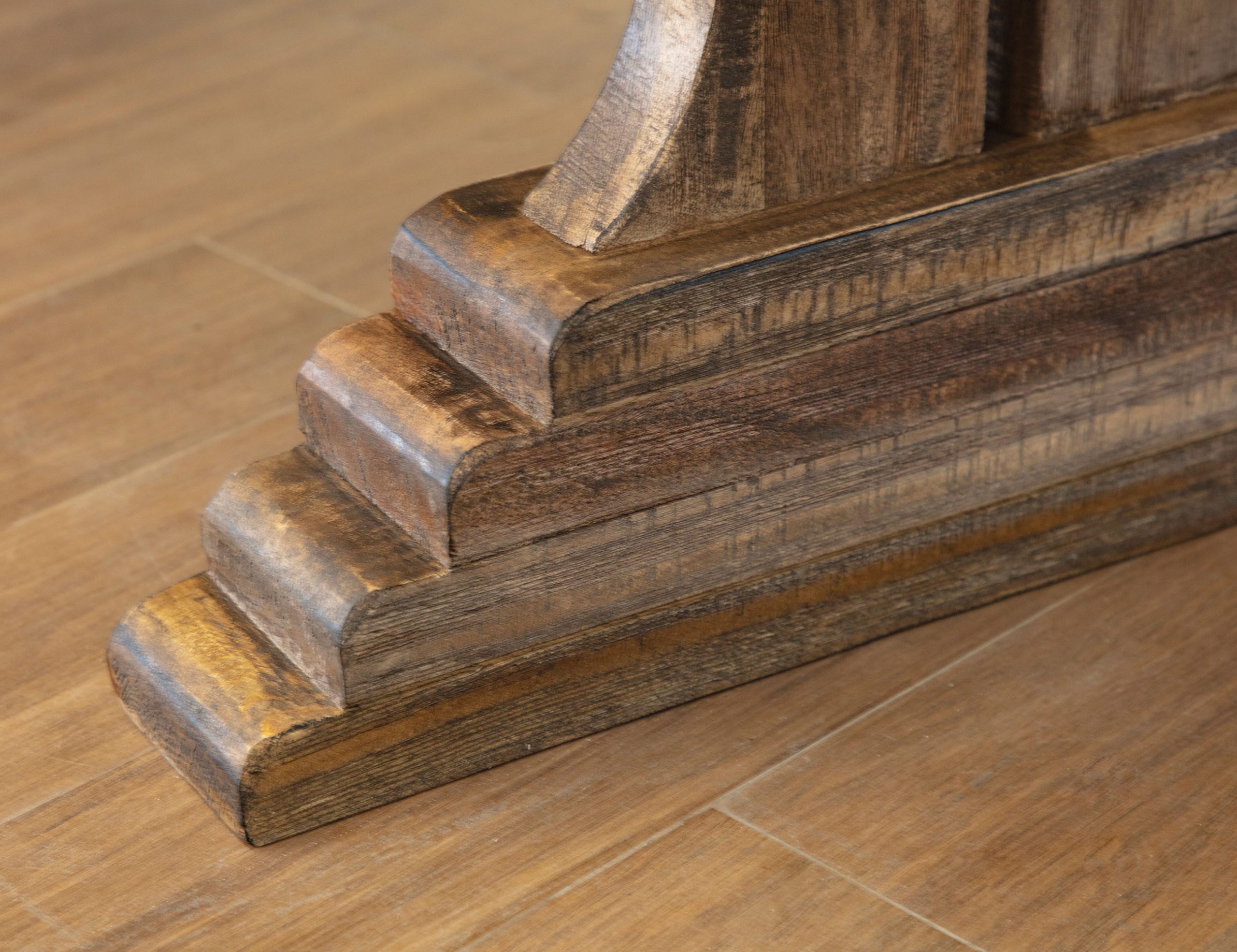 • Finish is achieved through a multi-step process in which pine is lightly distressed, and hand-applied two-tone lacquer in hues of light brown is used.