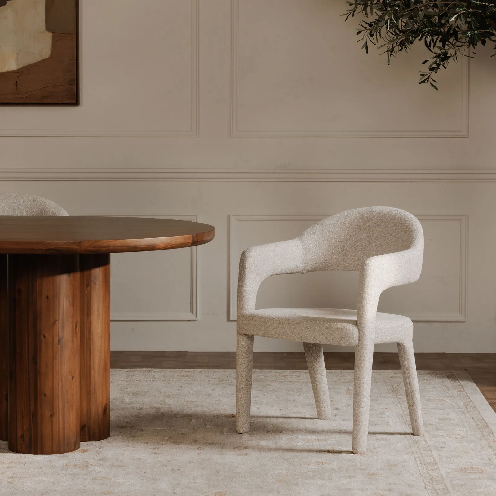 An update to the traditional barrel dining chair with an open barrel back for a light & airy feel