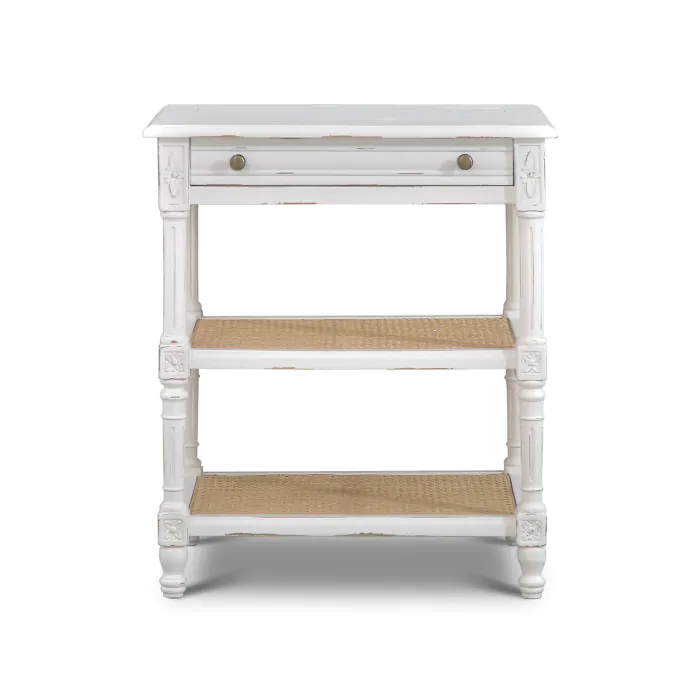 Expand display and storage space while adding a quaint décor element to a vintage-inspired space. Built from solid mahogany, the Melissa Side Table provides drawer storage as well as display space on two open shelves. This piece is offered with a vast array of finish and distress options to create a truly custom design.