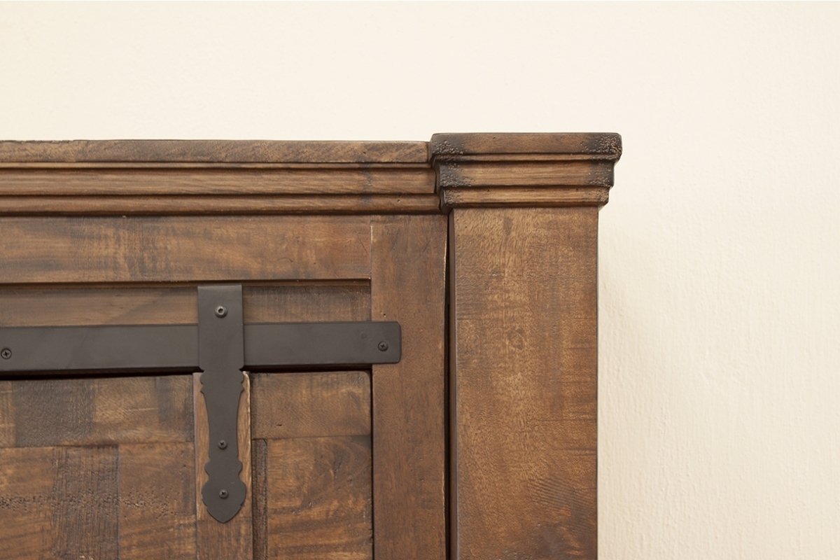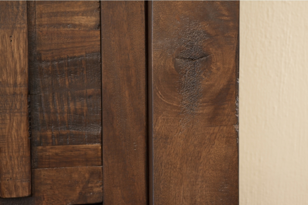 • Inspired by rustic design, the Mezcal Collection is meticulously crafted from solid pine wood and finished in a stunning deep brown tone. This collection showcases small handwrought metal belts that accentuate the natural beauty of the wood.