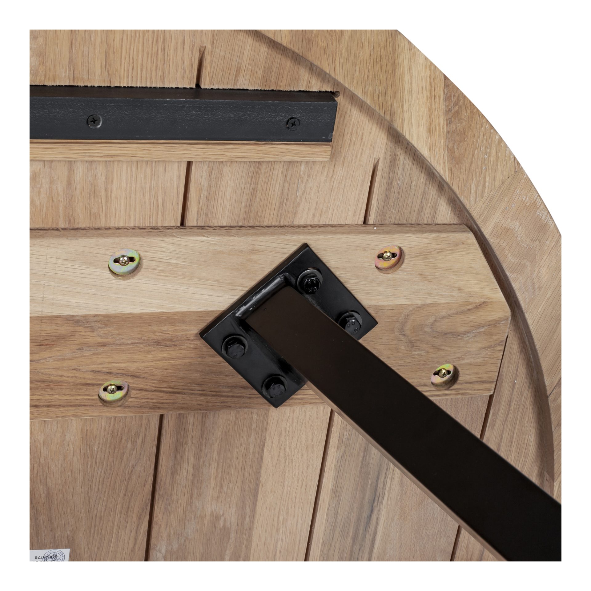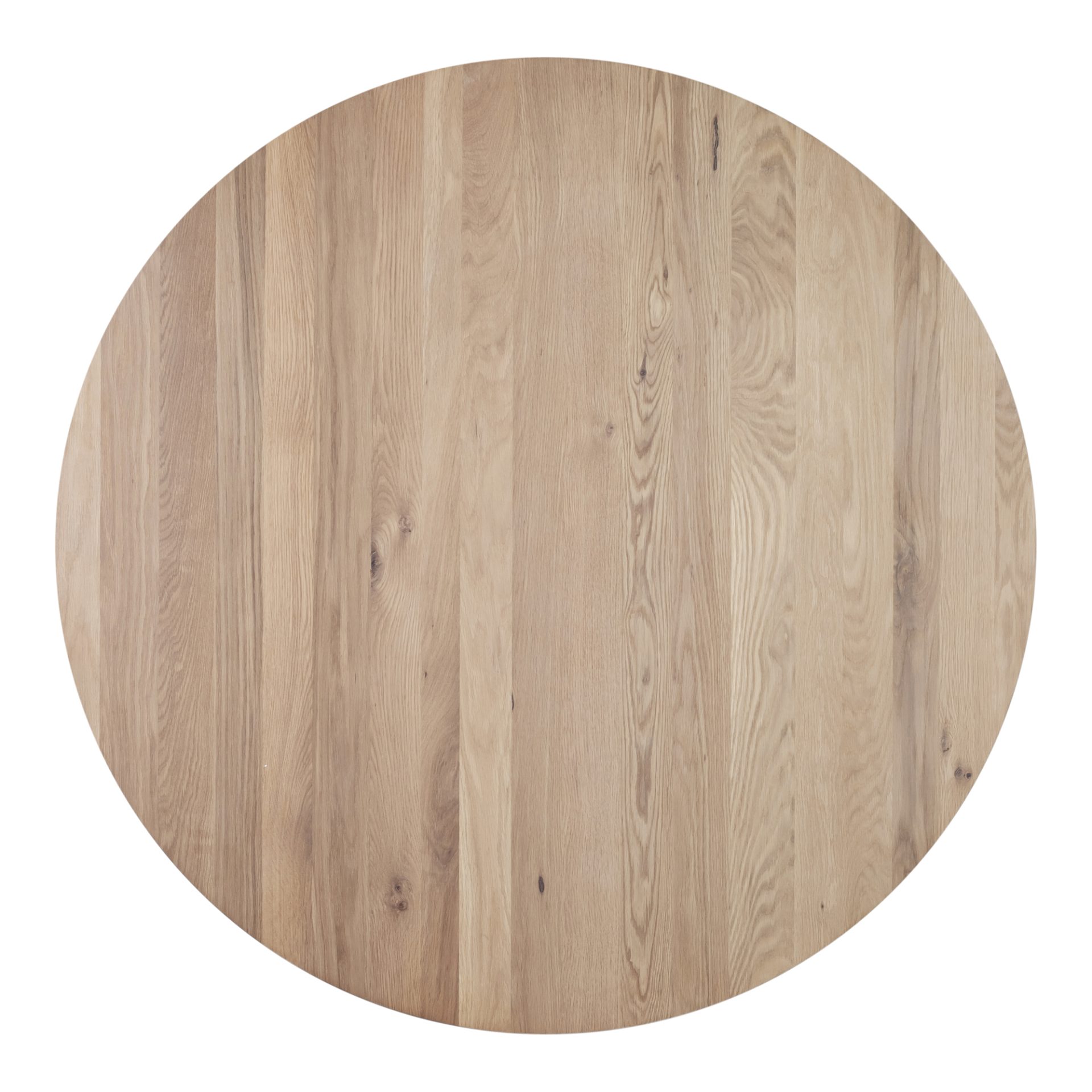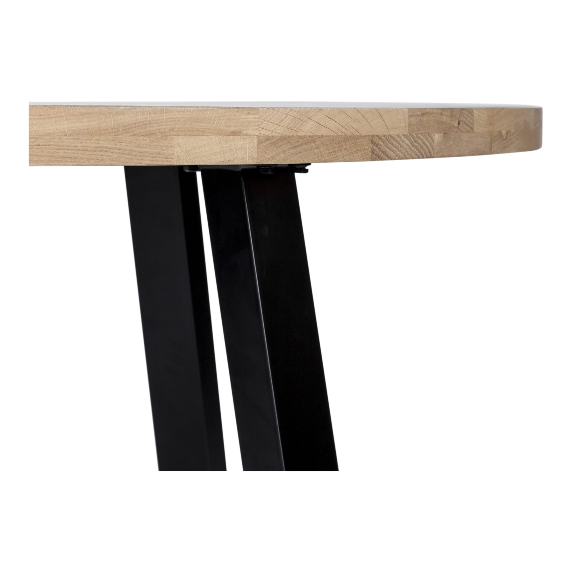 The Mila dining table molds the beauty of nature with contemporary design. A round live edge tabletop made from a spacious slab of solid oak provides a unique organic element to the dining room. With knots, whorls and woodgrains particular to each piece, every Mila has its own individual charm. Bold metal legs offer industrial elevation, a cool contrast to the all-natural tabletop. Please note the table’s oil finish needs to be reapplied every few months or as the oil dries out.