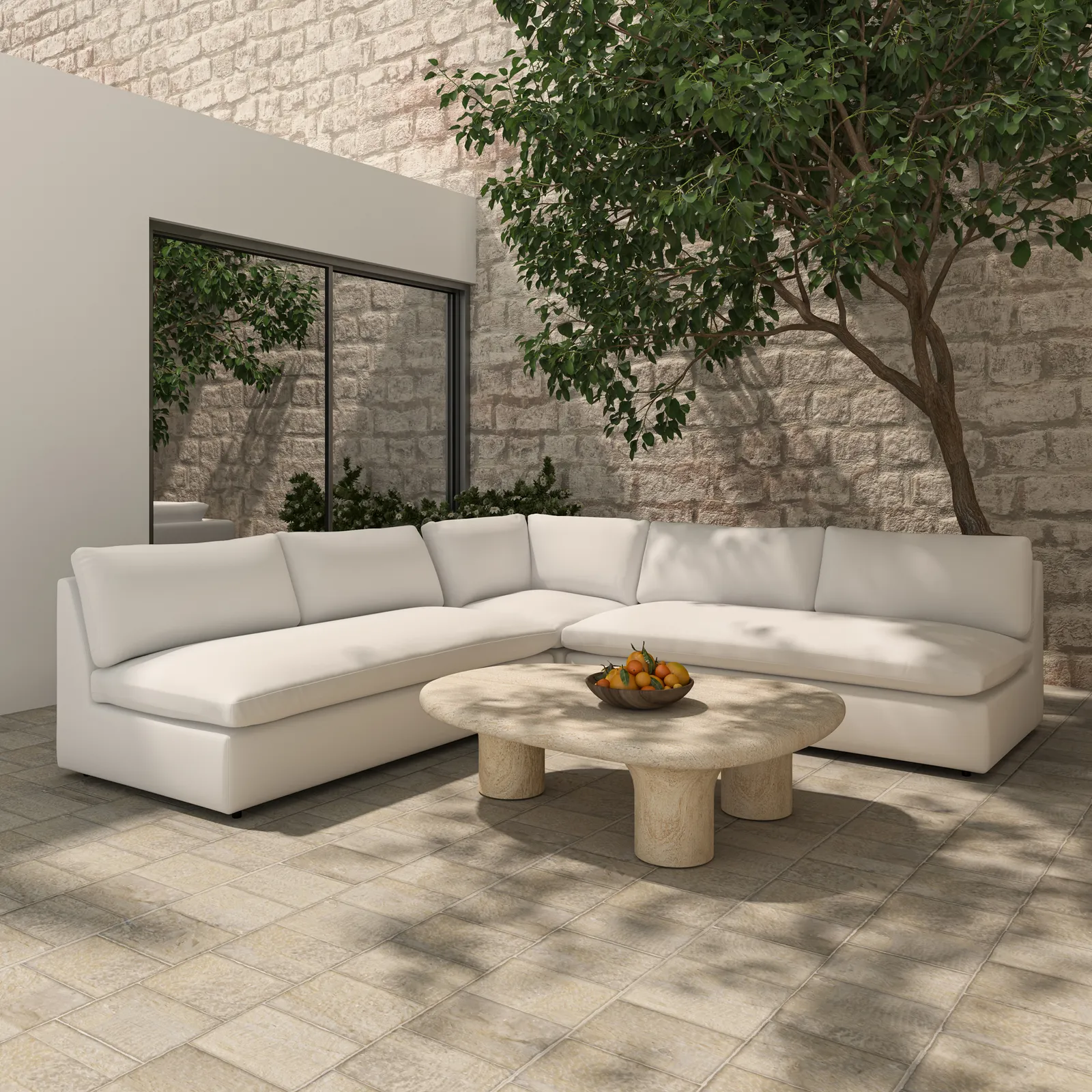 The Miles outdoor sofa offers the comfort of indoor furniture with the durability of outdoor design. This sofa features a sturdy aluminum frame and is upholstered in fade-resistant 100% Olefin fabric. The quick-dry foam ensures fast recovery after wet weather, providing a consistently comfortable seating experience.