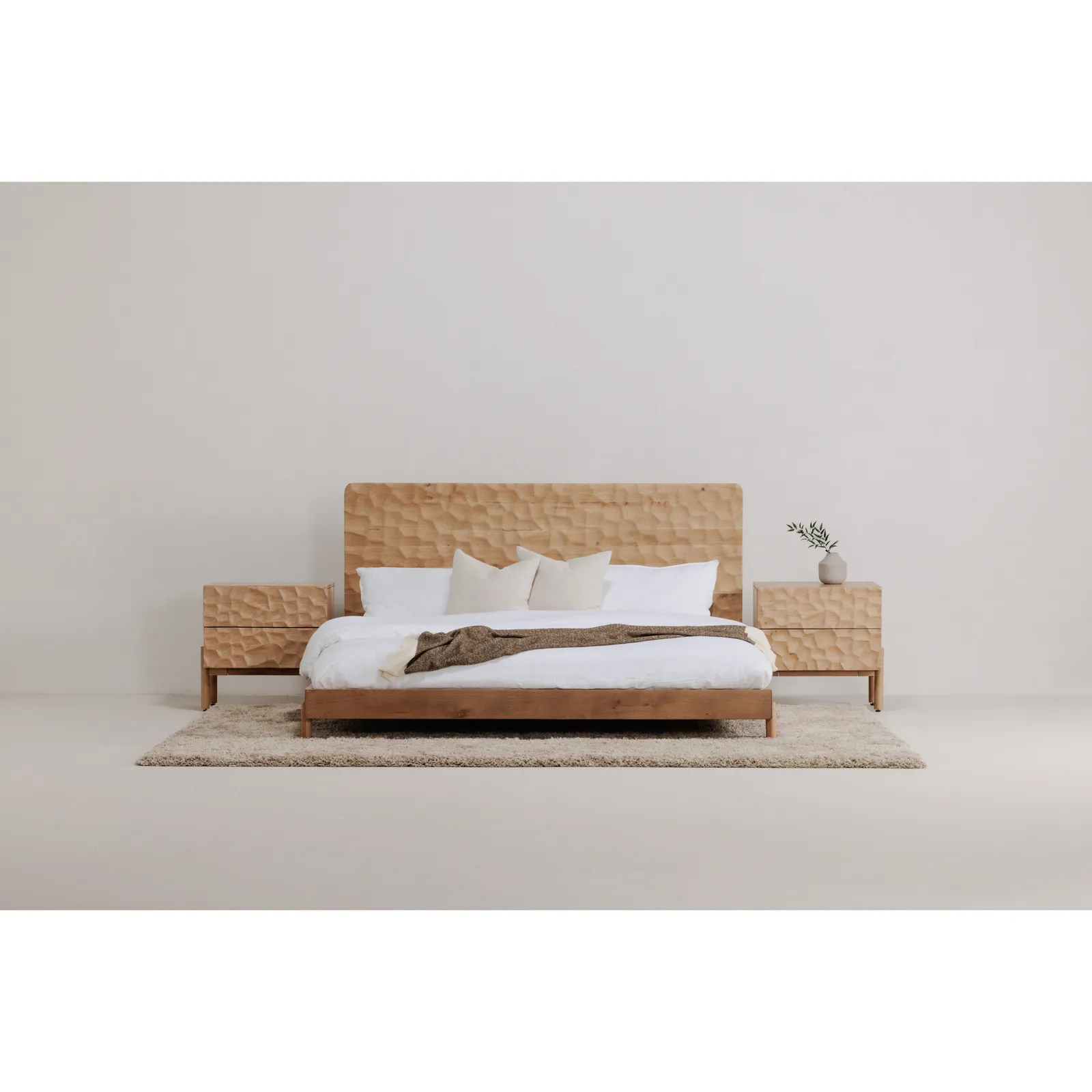 A three-dimensional love letter to the splendor of the vast cliffscape of the island of Okinawa in Japan, organic shapes reminiscent of hand-chiseled detailing adorn the headboard of the Misaki bed. Each groove is carefully carved out to lovingly represent the history and soul of this otherworldly place, adding depth and warmth to this dreamy piece.