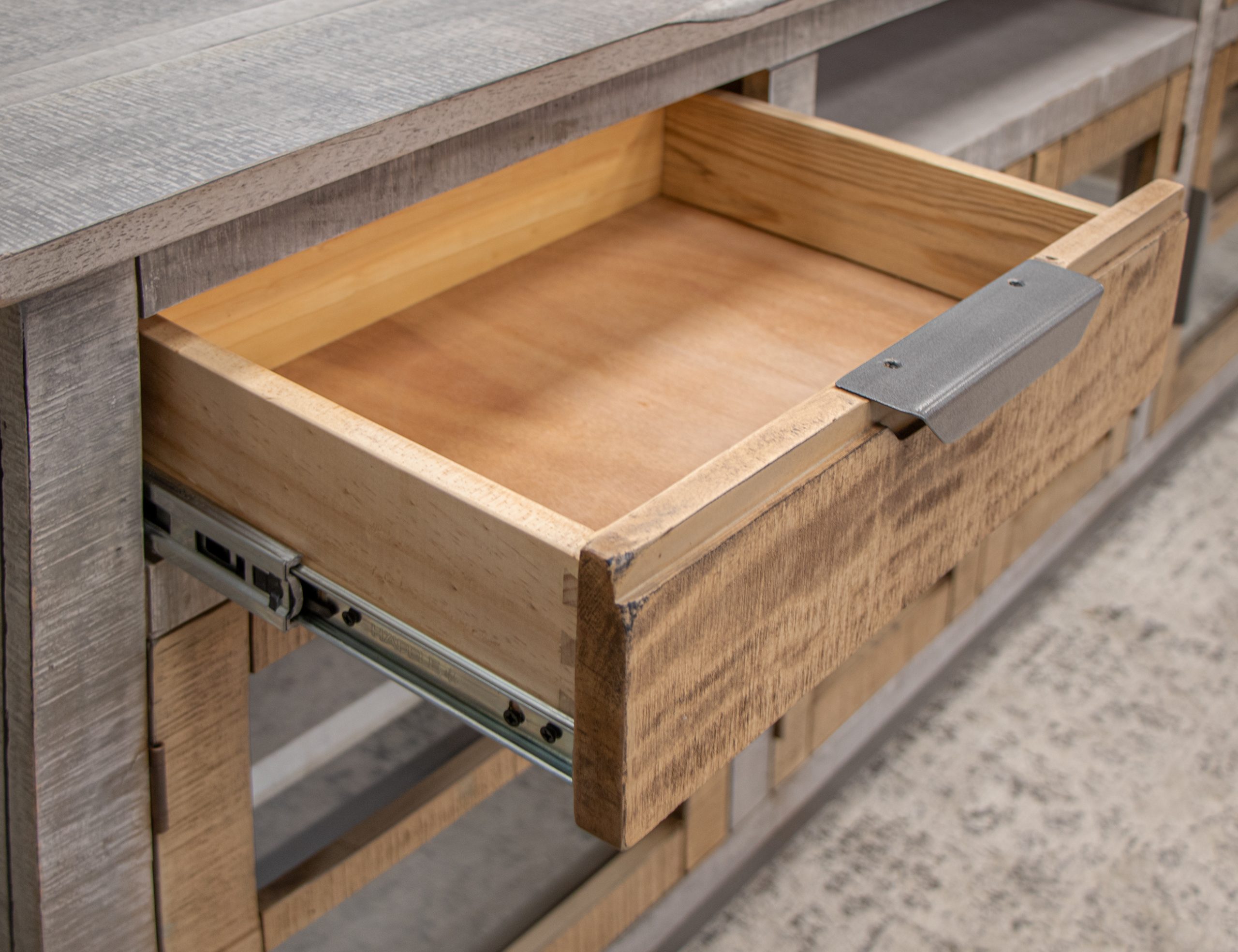 • English dovetail on 100% solid wood drawer fronts. Hafele steel slides.