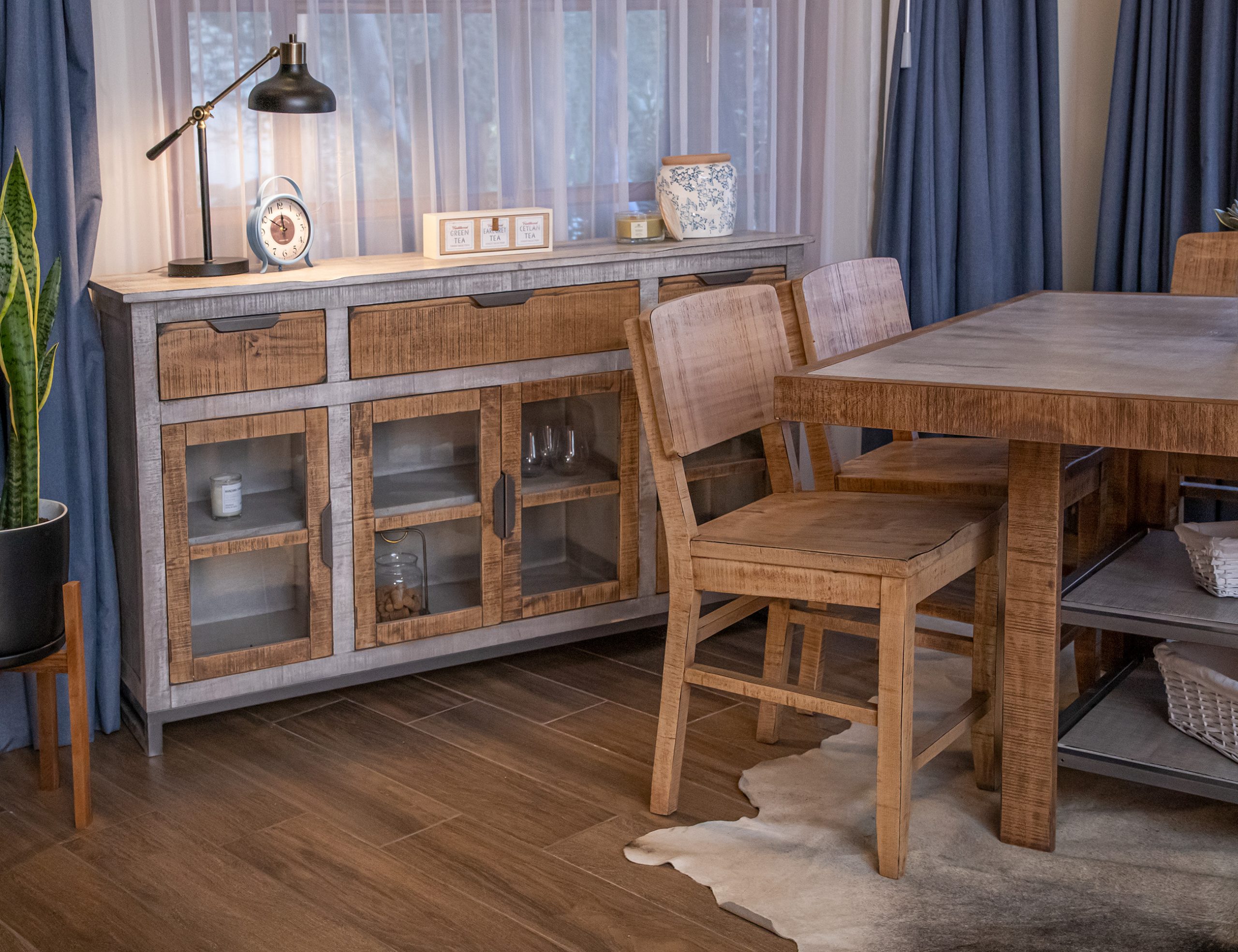 • Drawing inspiration from transitional design, the Mita collection seamlessly blends metal and wood elements. This exquisite collection is meticulously crafted from sustainable mango wood, skillfully hand-distressed to achieve a captivating finish.