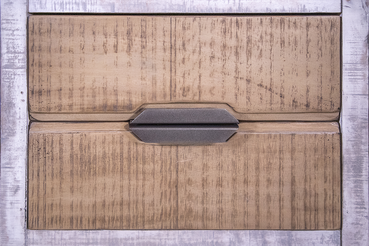 • Drawing inspiration from transitional design, the Mita collection seamlessly blends metal and wood elements. This exquisite collection is meticulously crafted from sustainable mango wood, skillfully hand-distressed to achieve a captivating finish.