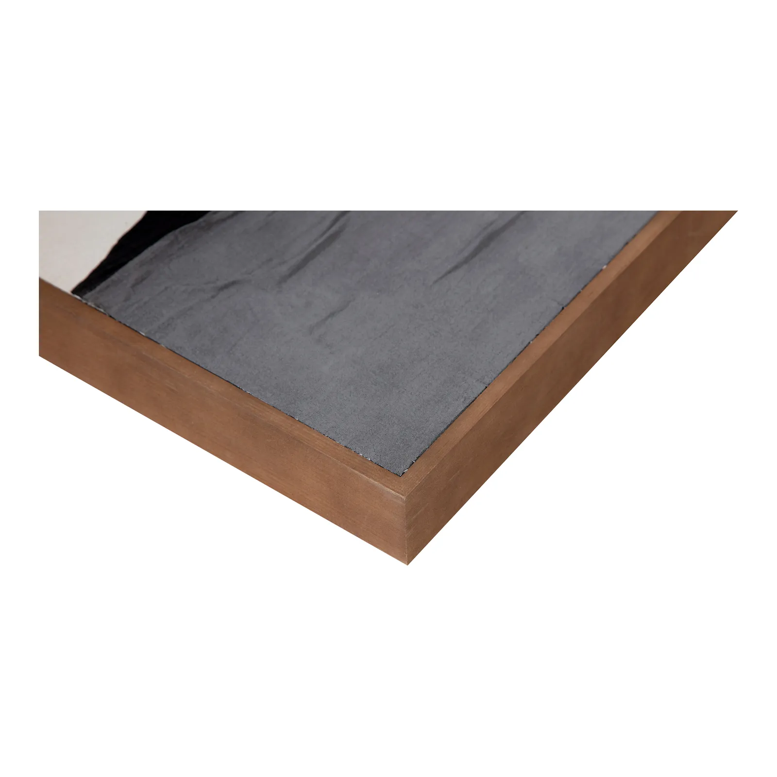 A captivating abstract painting, Moda features delicate soft neutrals harmonized with subtle pink and rust hues, enhanced by dark tones for depth and layered cloth for added texture. Elegantly framed in solid pine, this piece draws the eye with intrigue and interest.