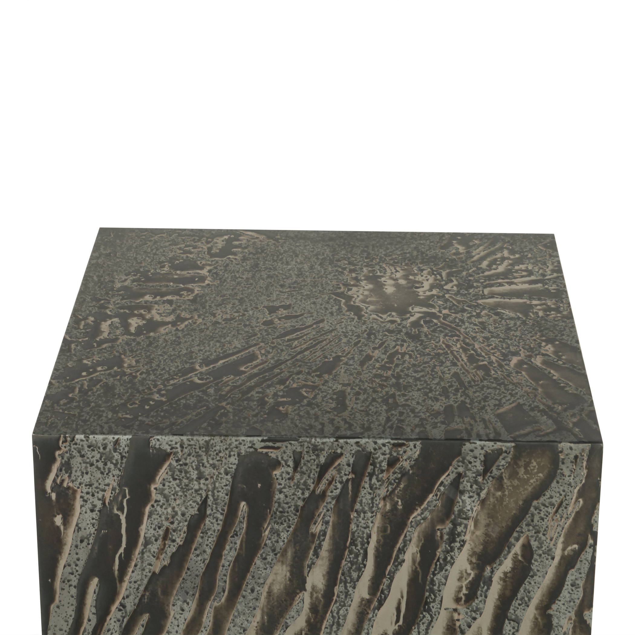 The Mojave Coffee Table features a squared 20″ top in a rich desert patina finish, complemented by a sleek brass base. With its clean, geometric lines and organic texture, this table adds a modern, sophisticated touch to any living space.