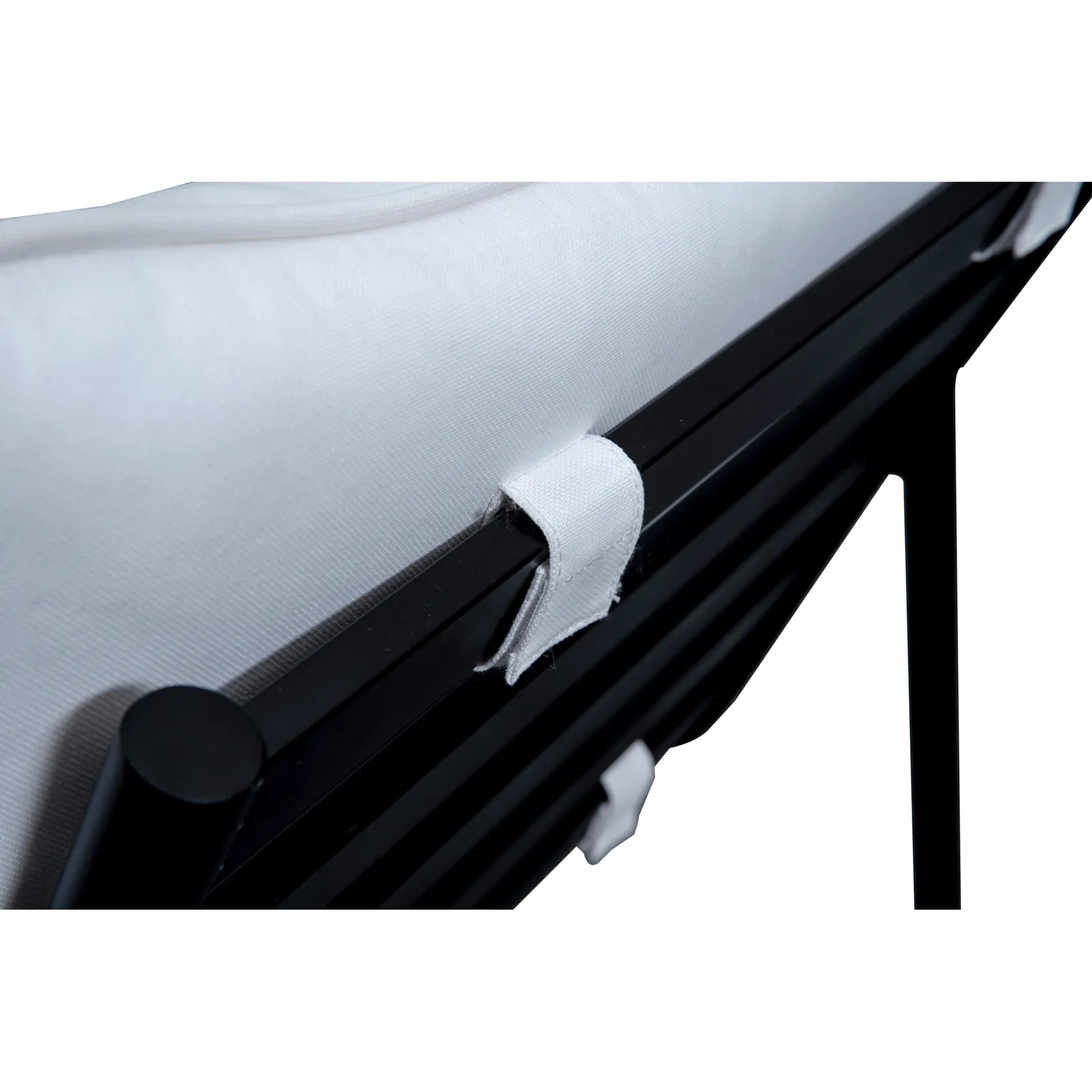- Thin stainless-steel frame, 100% Olefin fabric upholstery, & quick dry foam