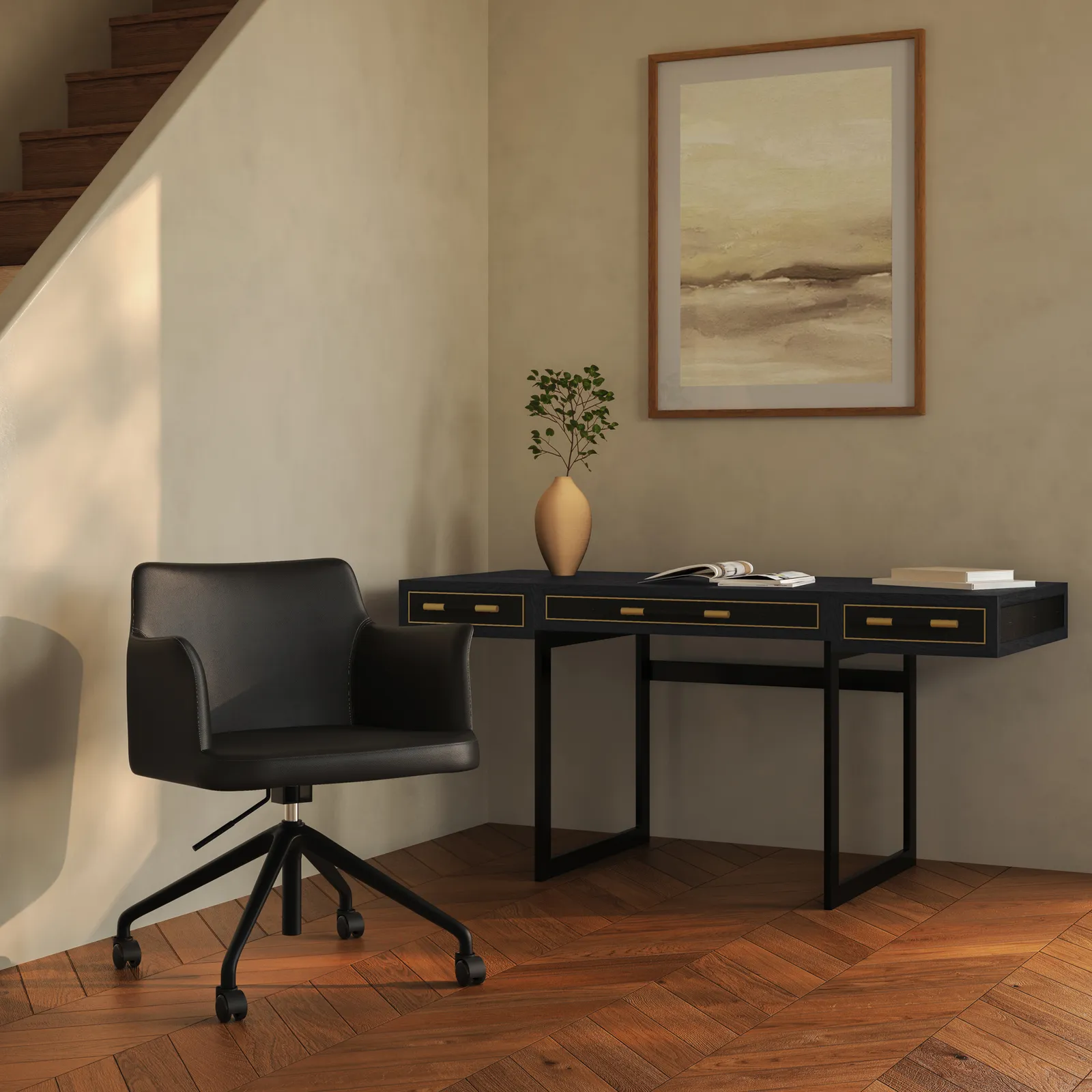 The Morris office chair is engineered for comfort, support, and flexibility. Its curved back and padded seat offer ergonomic benefits, including improved posture. The chair’s swivel function and caster wheels ensure effortless mobility, while the height-adjustable feature allows for customization to various desk heights and personal preferences.