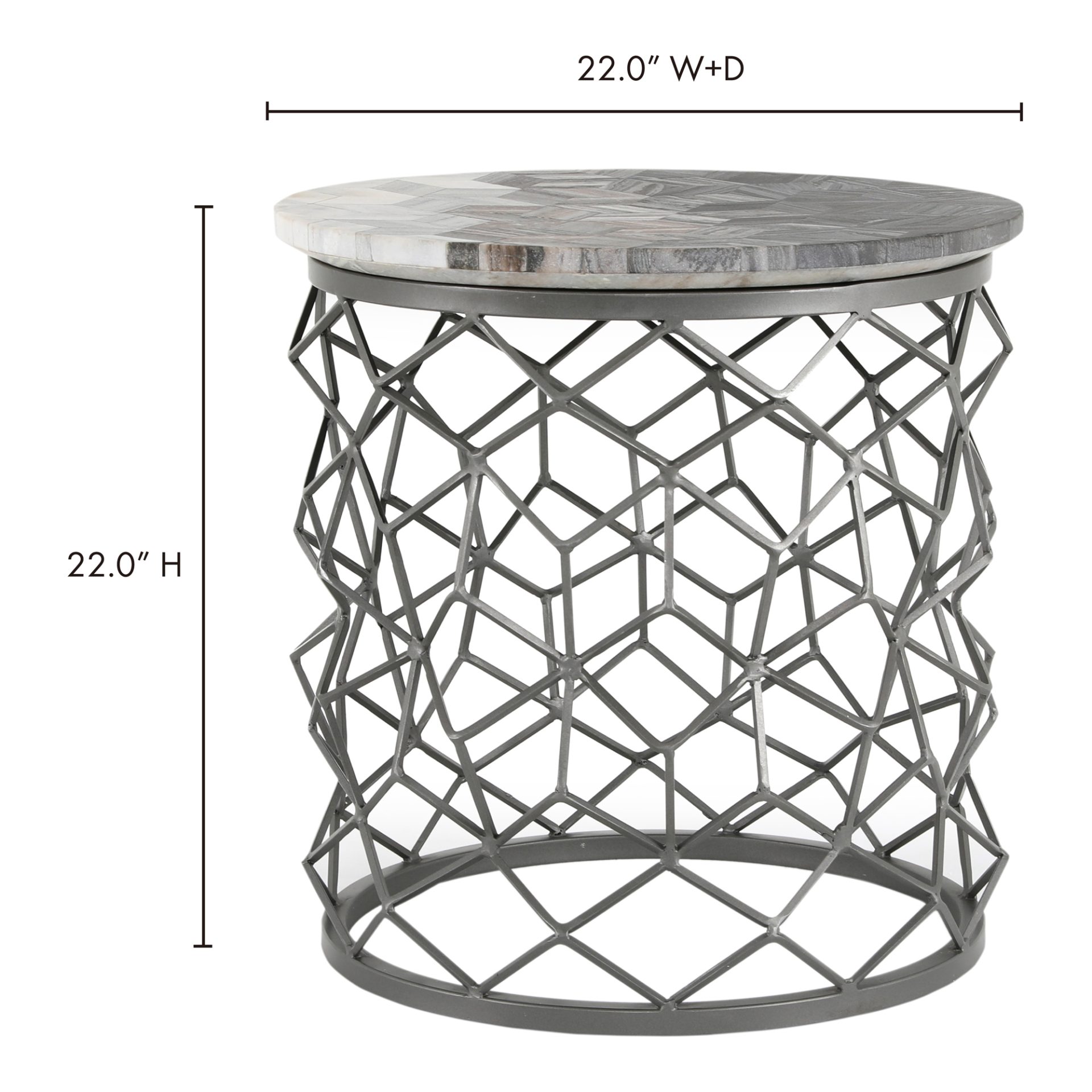 The Mythos doesn’t disappoint with it’s incredibly designed side table. The 100% polished marble is laid out to create an ombre table top, while the intricately designed iron base makes it sophisticated and regal. *Please note that marble is a natural material and veining does varies.