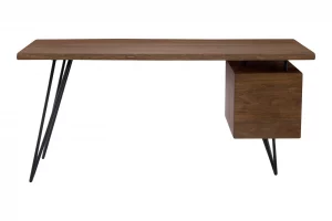 The live edge of high-quality acacia wood makes the Nailed Desk a beautiful addition to your office design plan. Its large tabletop displays the natural variances in wood grain and knots that make each desk unique. Iron hairpin legs accompany the mid-century modern design, elevating the desk’s floating cabinet drawer.