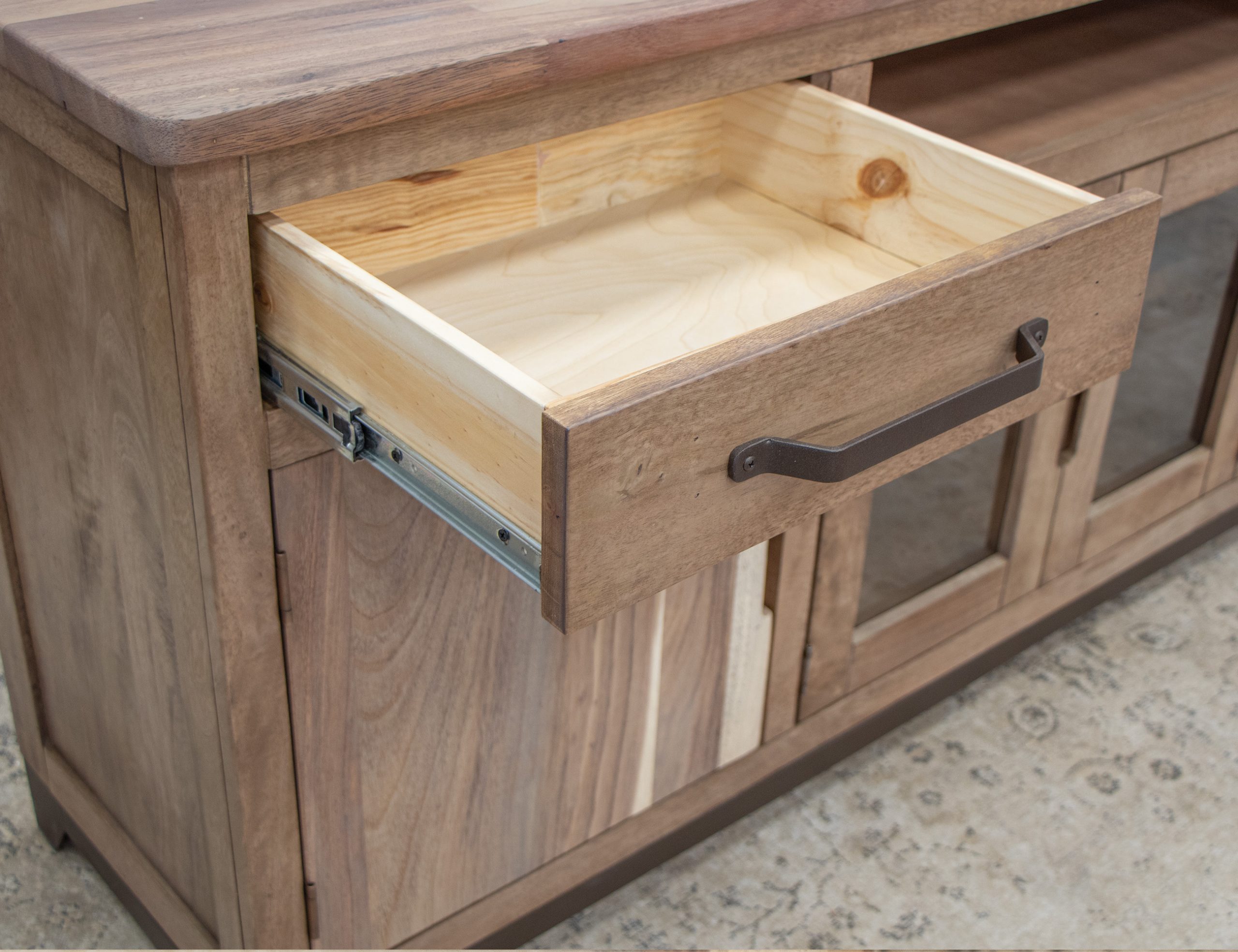 • English dovetail on 100% solid wood drawer fronts. Hafele steel slides.