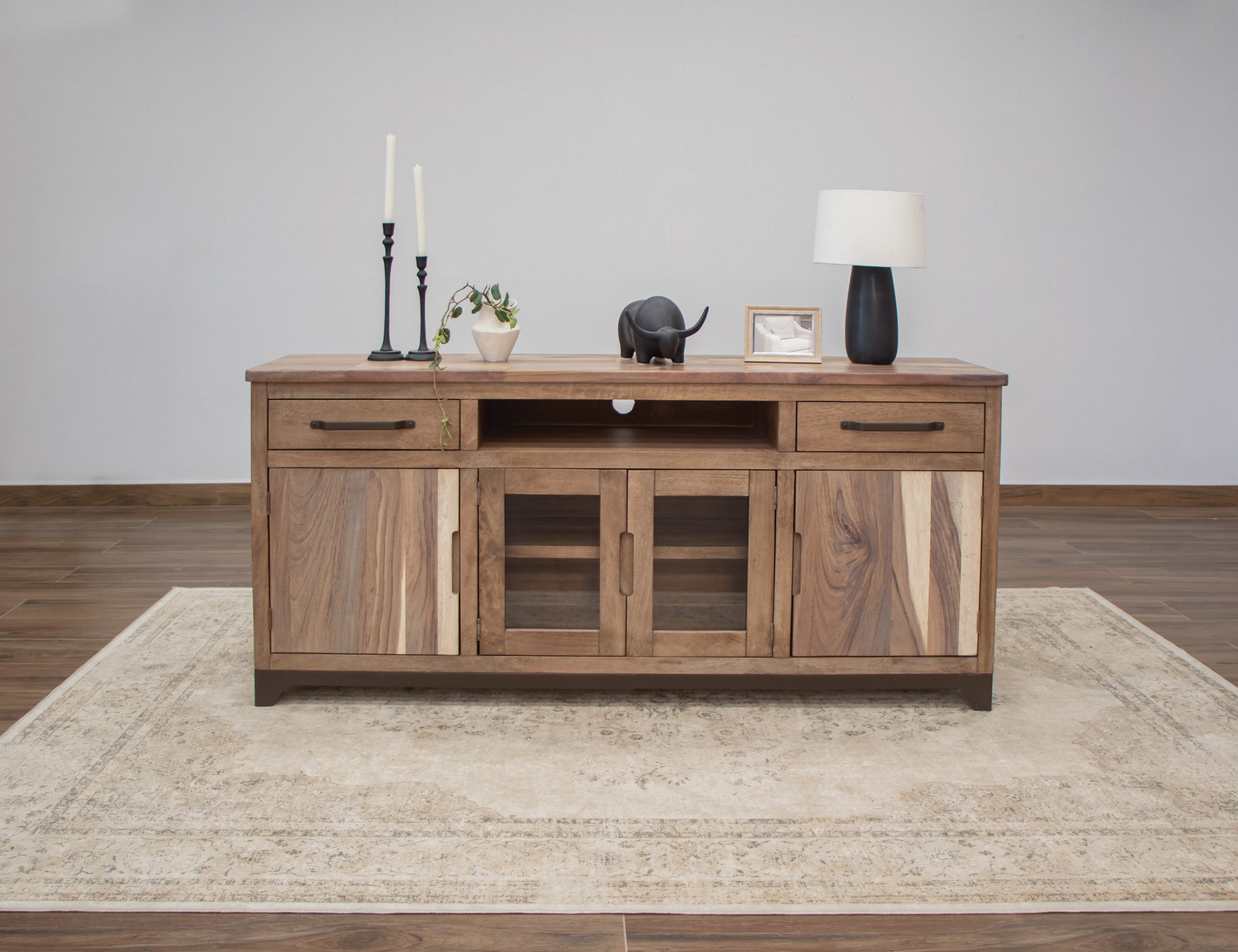 Natural Parota 2 Drawer 2 Door 2 Glass Door 70″ TV Stand