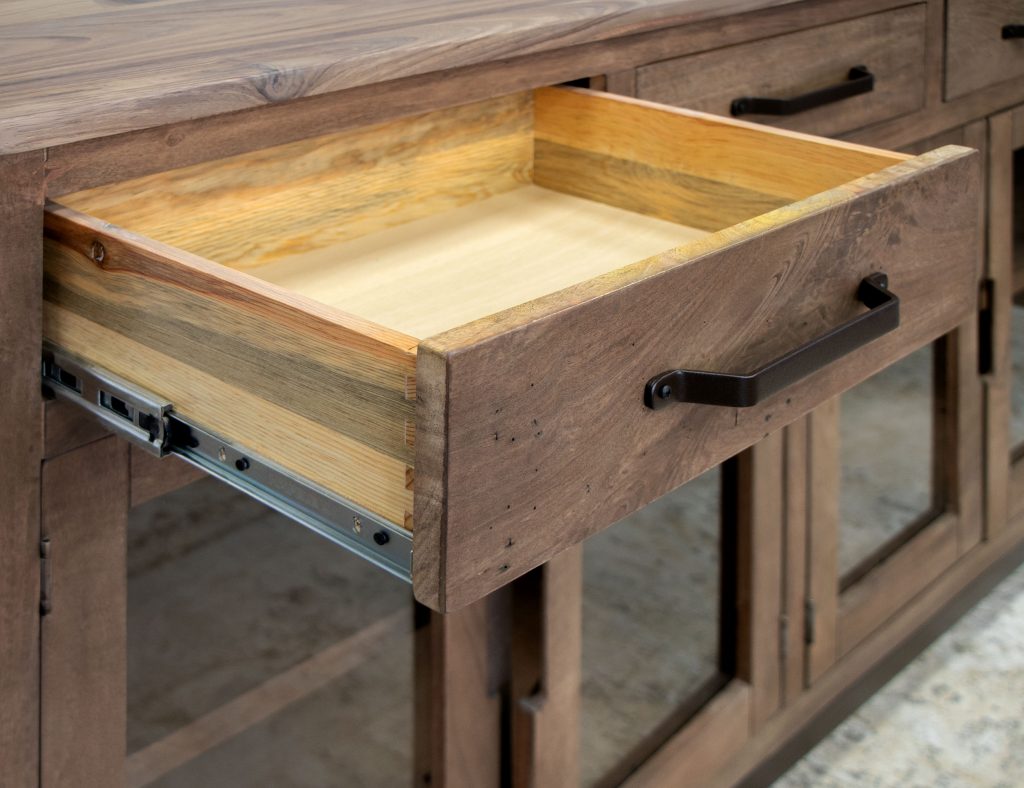 • English dovetail on 100% solid wood drawer fronts. Hafele steel slides.