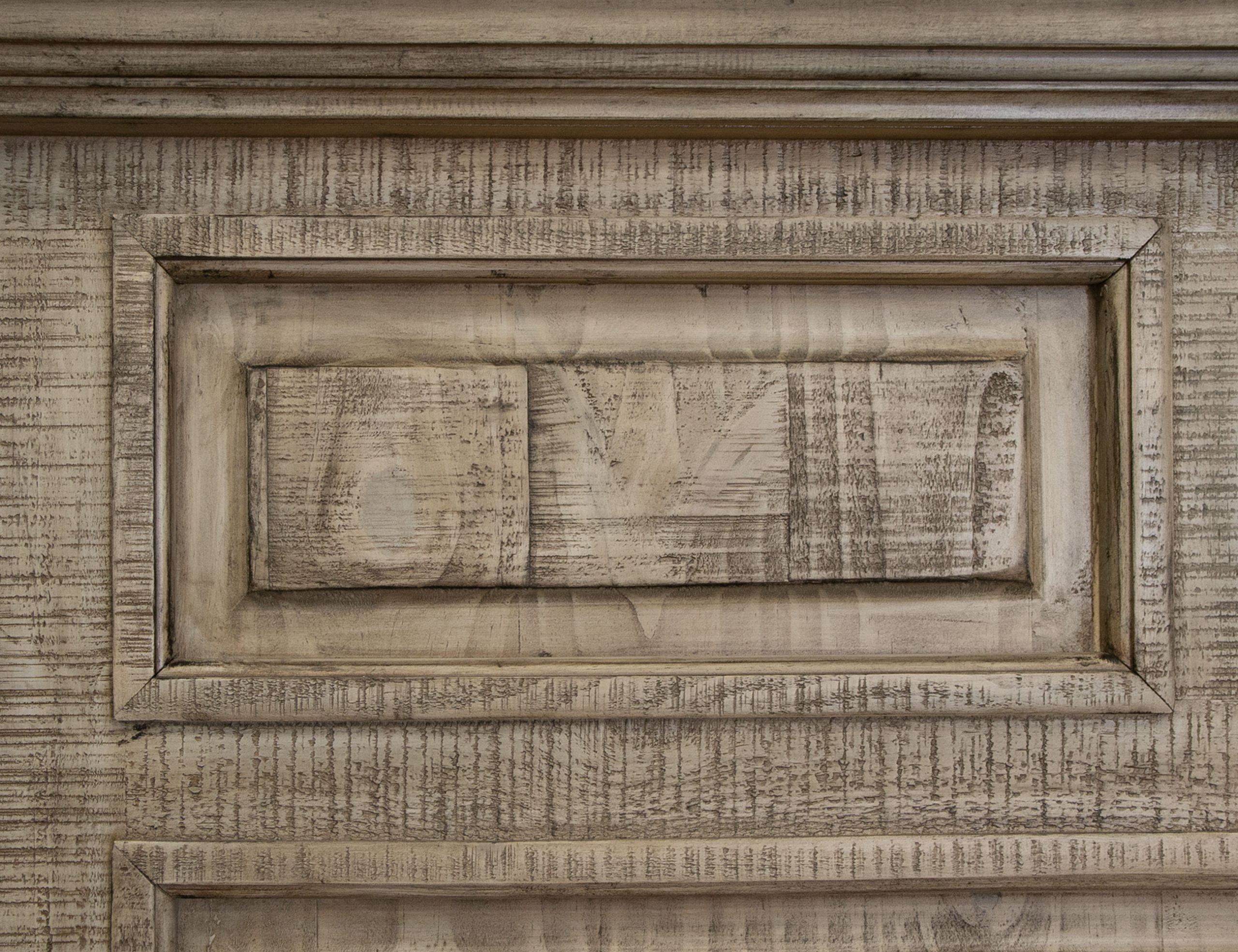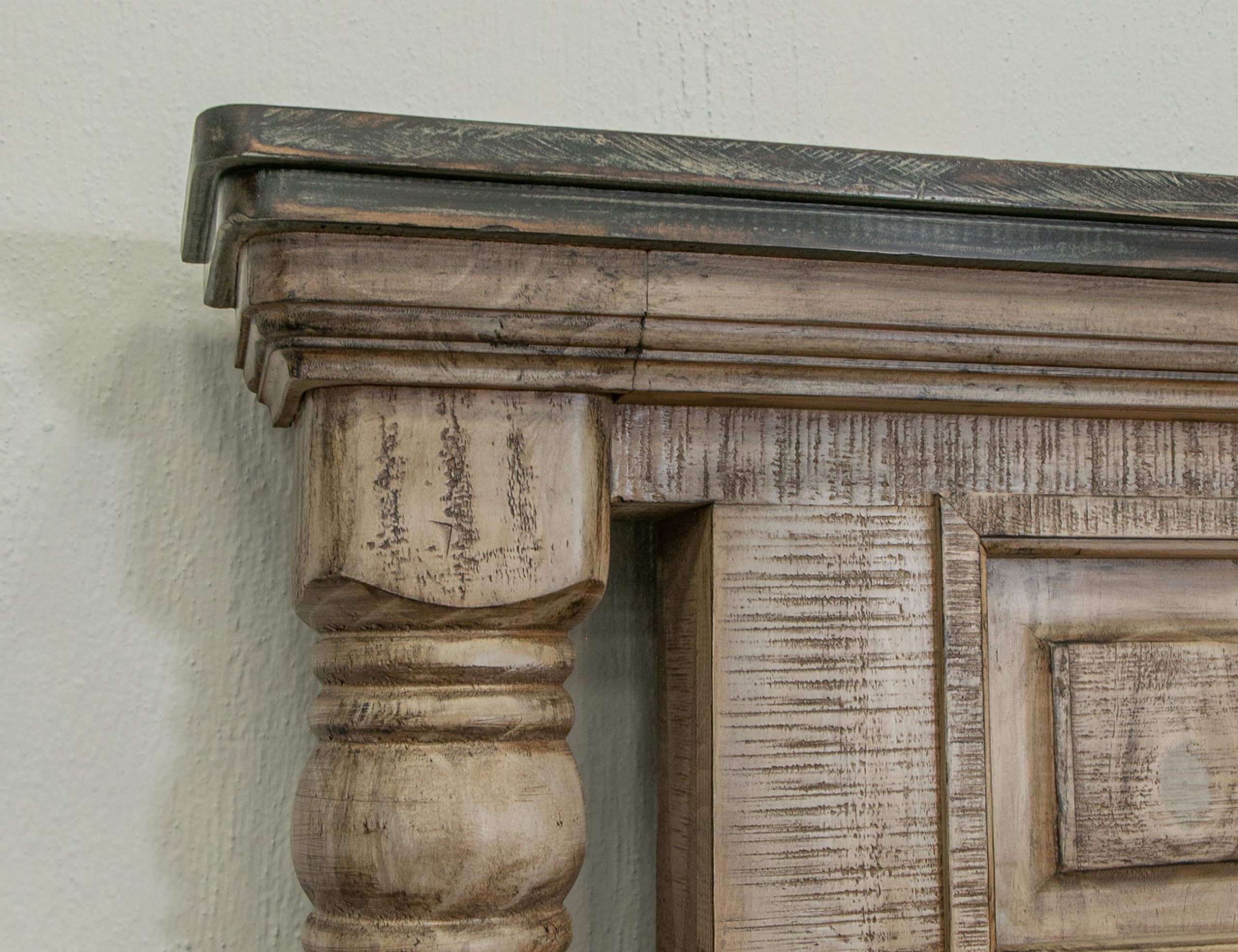 • The Natural Stone collection is expertly handcrafted from solid pine wood, meticulously wire-brushed to enhance the depth and texture of the wood’s unique grain. Paying tribute to the harmony and simplicity of classical farmhouse style, this rustic piece embodies a dynamic interplay of graceful lines and distinctive wood-turned details.