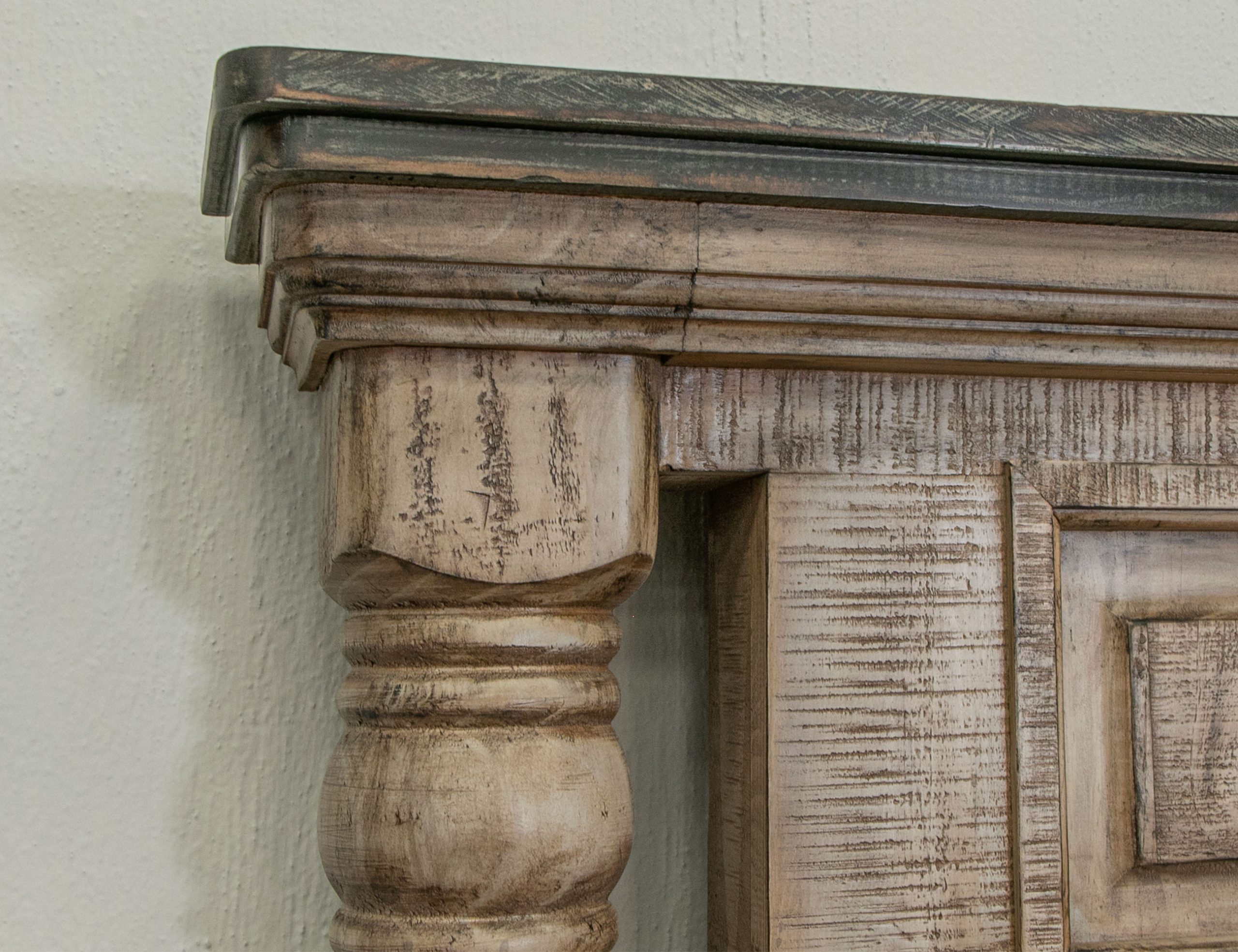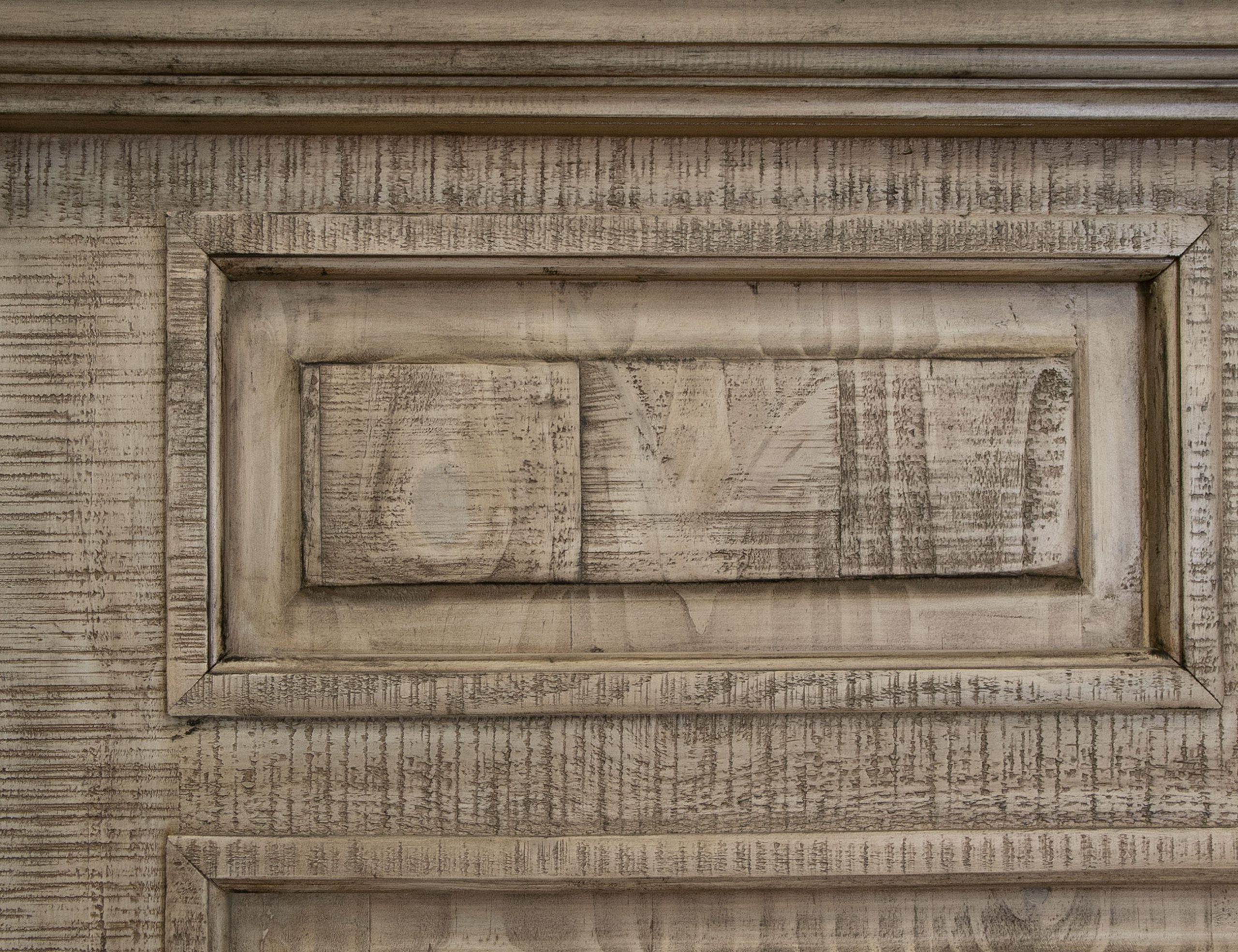 • The Natural Stone collection is expertly handcrafted from solid pine wood, meticulously wire-brushed to enhance the depth and texture of the wood’s unique grain. Paying tribute to the harmony and simplicity of classical farmhouse style, this rustic piece embodies a dynamic interplay of graceful lines and distinctive wood-turned details.