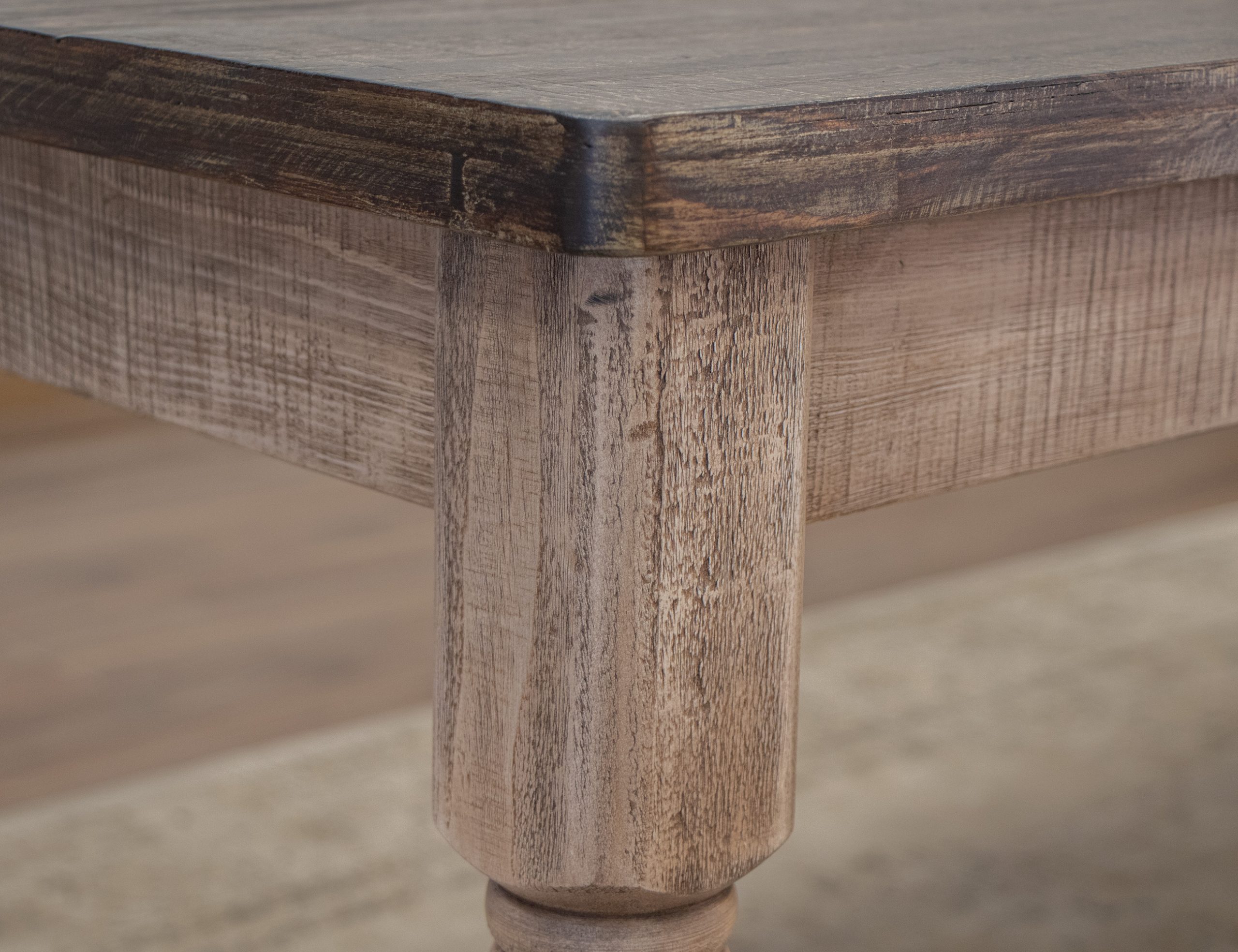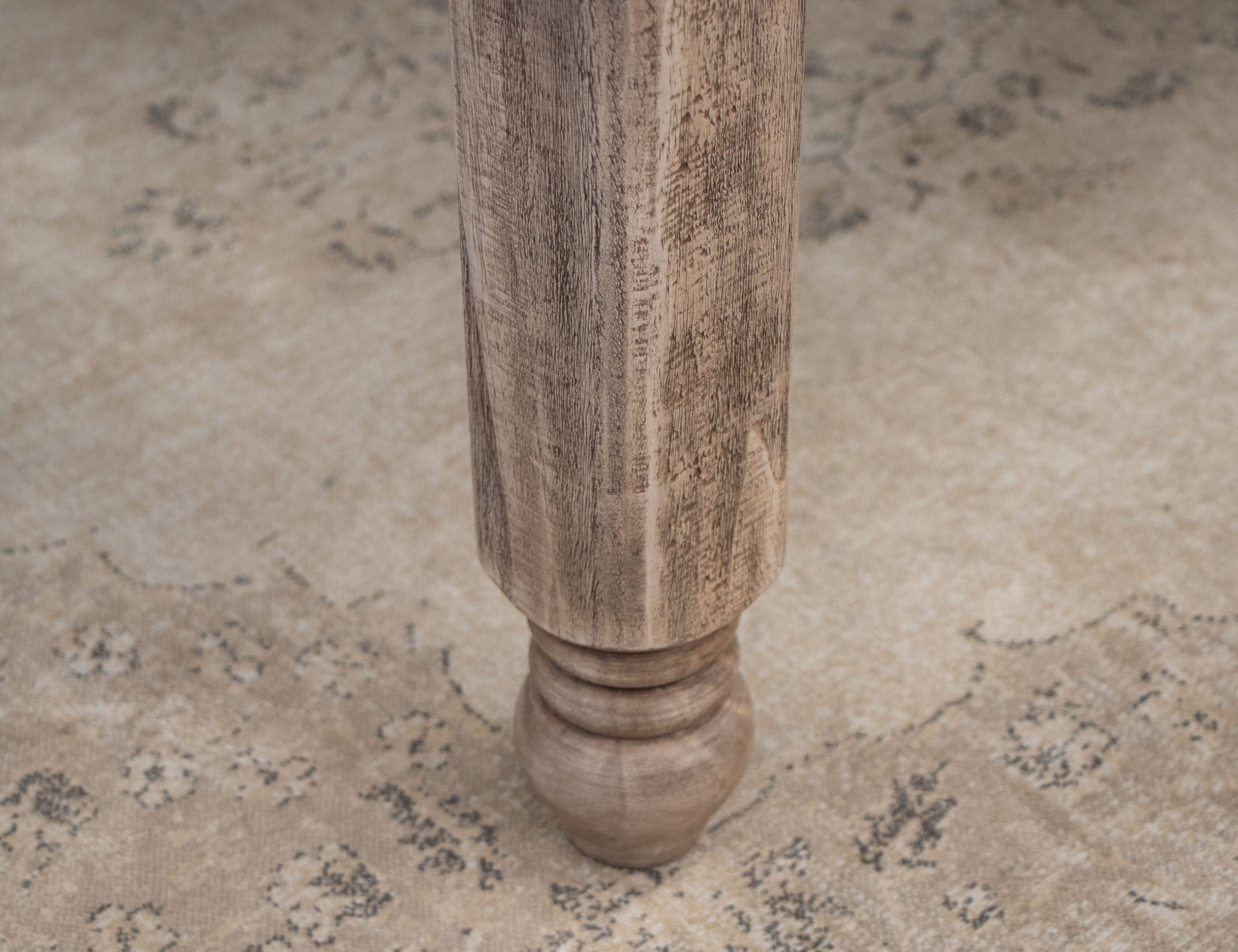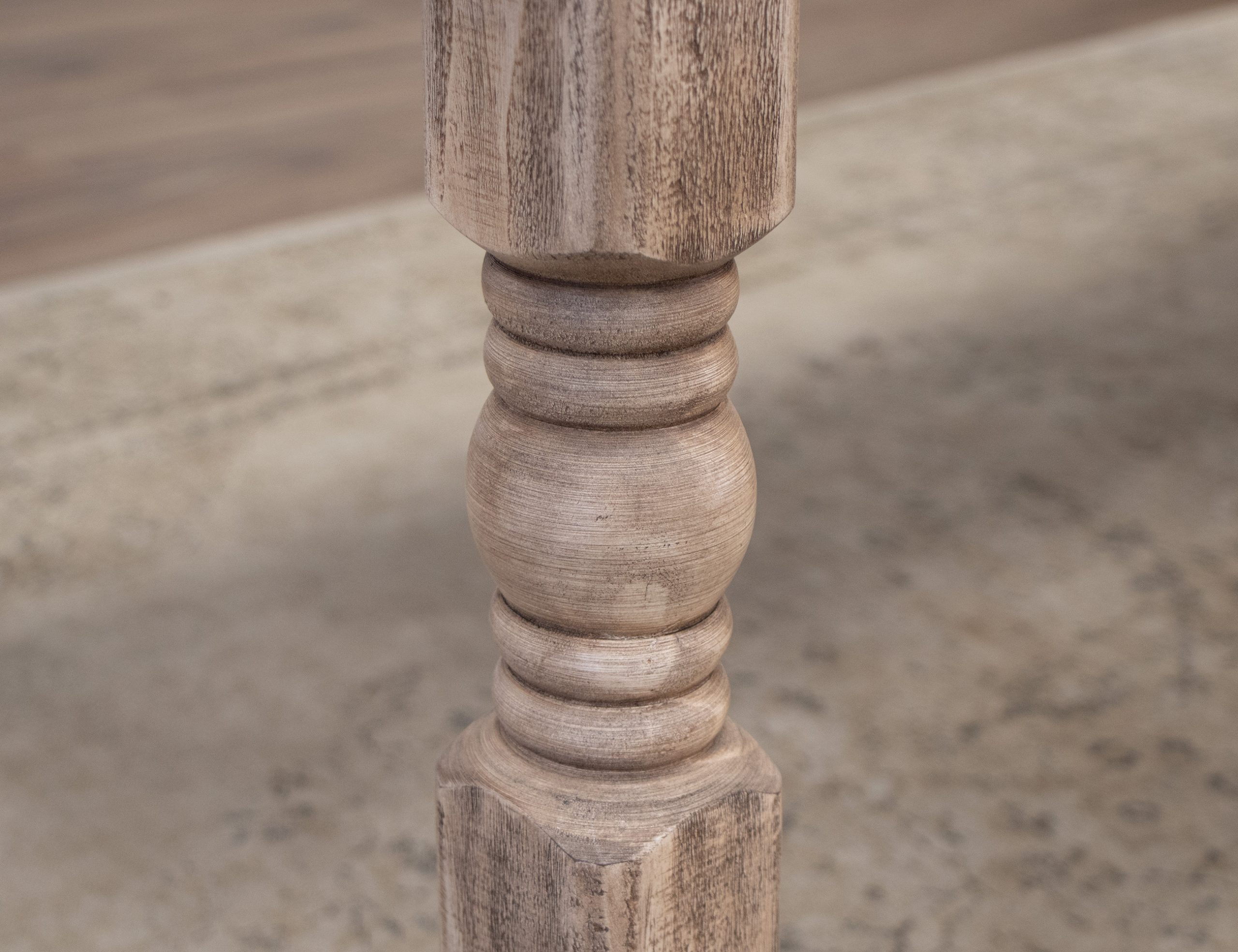 • The Natural Stone collection is expertly handcrafted from solid pine wood, meticulously wire-brushed to enhance the depth and texture of the wood’s unique grain. Paying tribute to the harmony and simplicity of classical farmhouse style, this rustic piece embodies a dynamic interplay of graceful lines and distinctive wood-turned details.