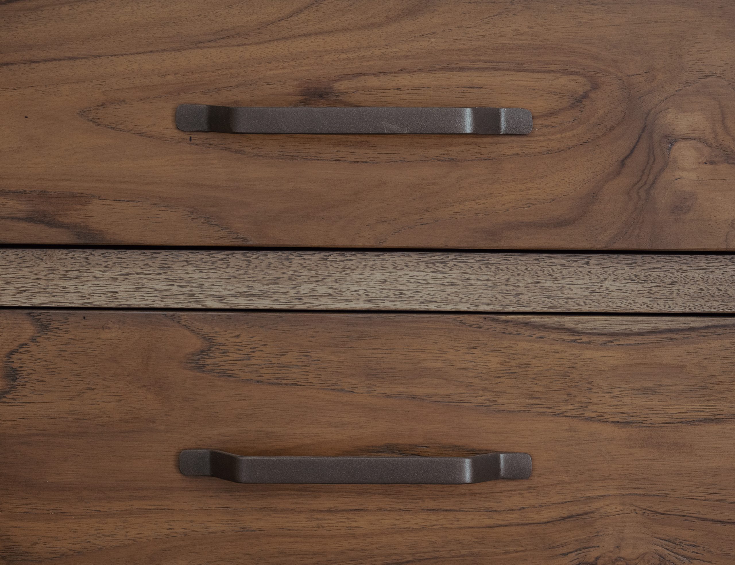 • The Natural Teca collection captures the essence of transitional design by seamlessly blending metal and wood elements. The occasional tables are crafted from sustainable mango wood and teak veneer, showcasing the natural beauty of teak wood on the tops and providing a bottom shelf for extra storage.