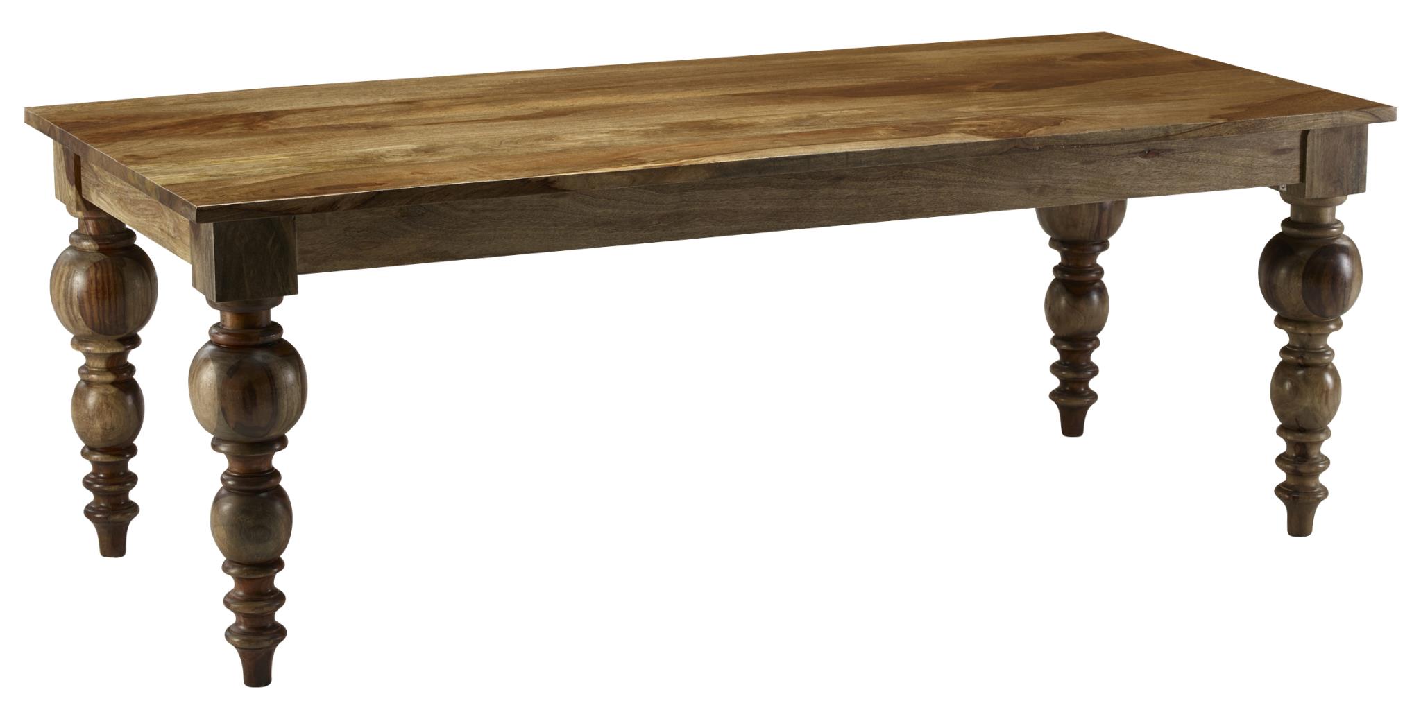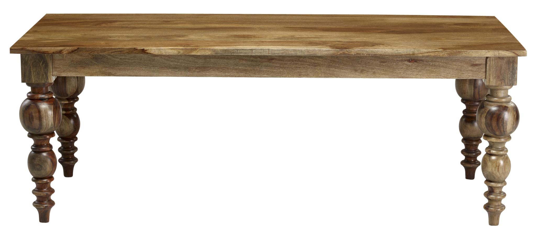 This handsome table is constructed of mango timber in a water resistant lacquer sealed multi step blended finish designed to bring out the depth and beauty of the wood. Featuring stout turned ball legs,, the table coordinates with the UCS-6672 dining bench.