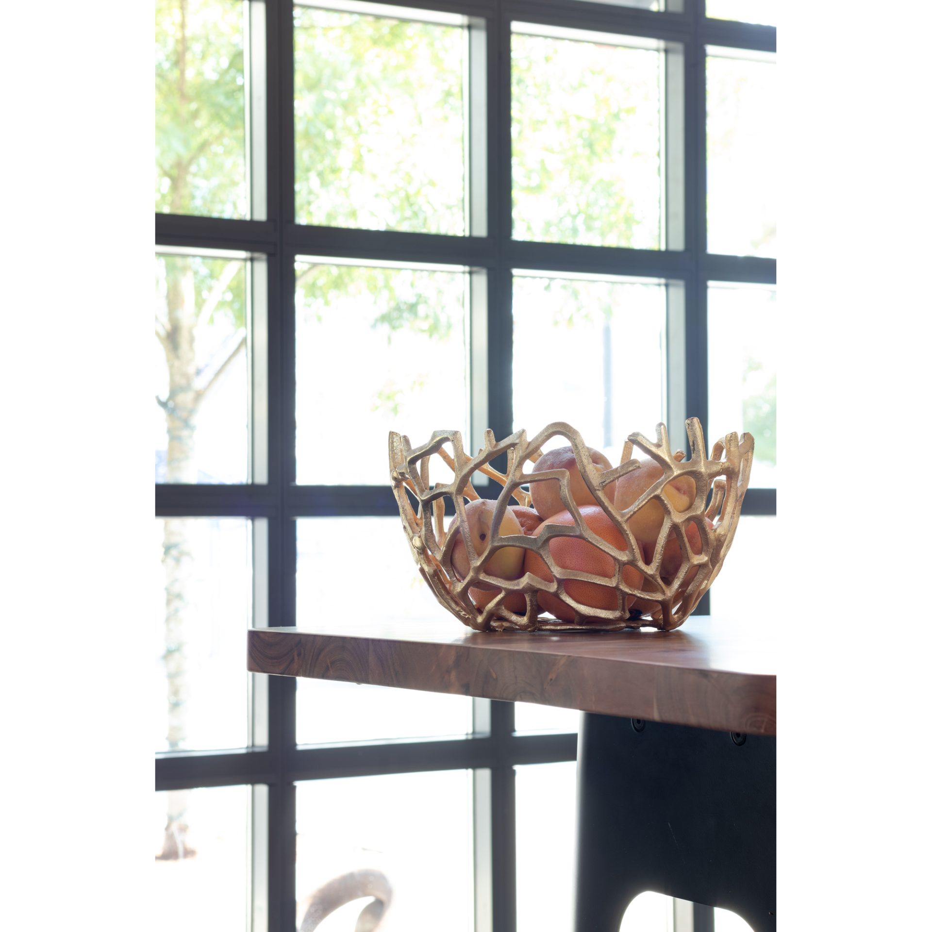 A bowl that is perfect in both worlds. The Nest bowls are made from aluminum with gold finish making it a great as a decor piece or to hold your fresh market apples. Comes in set of two.