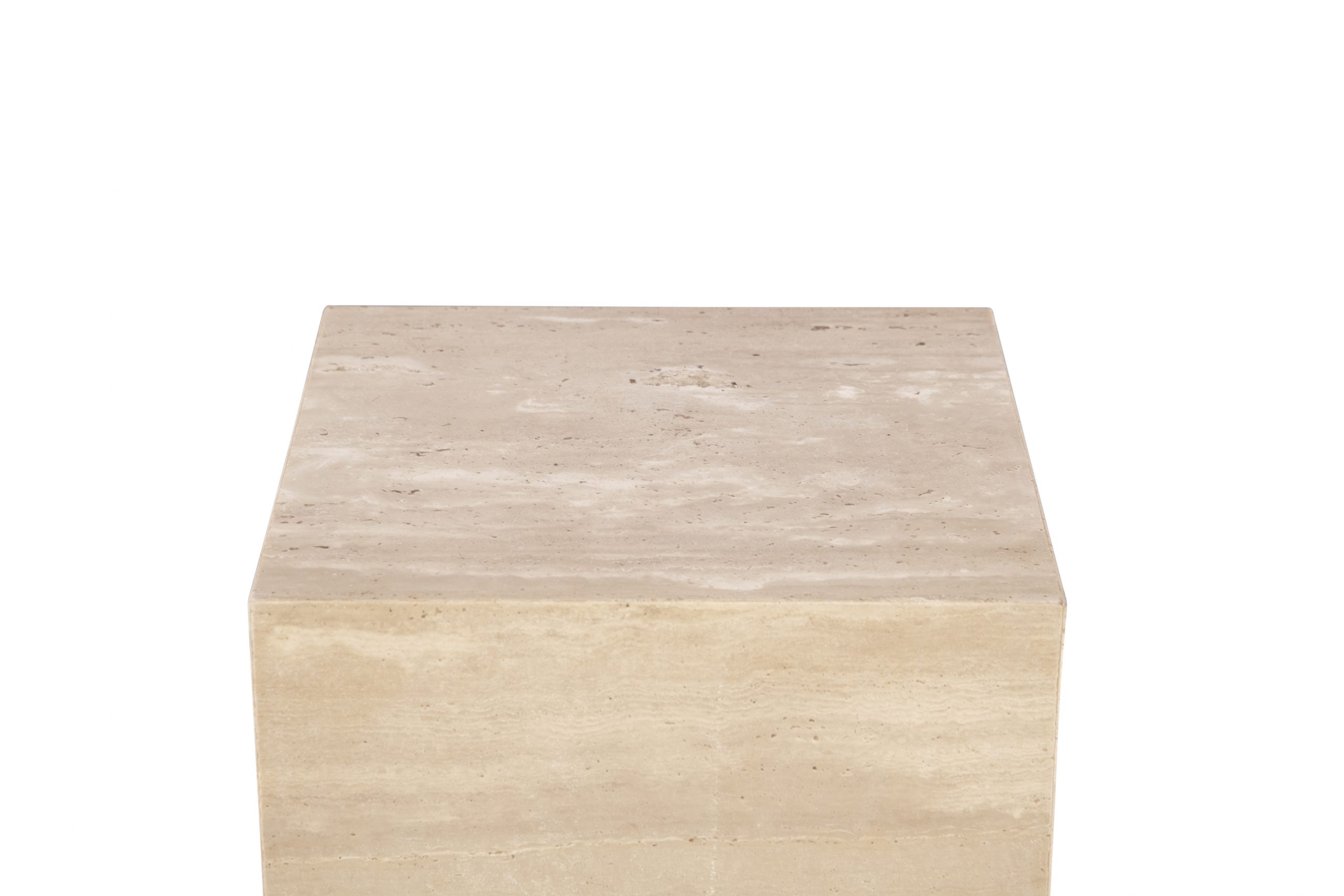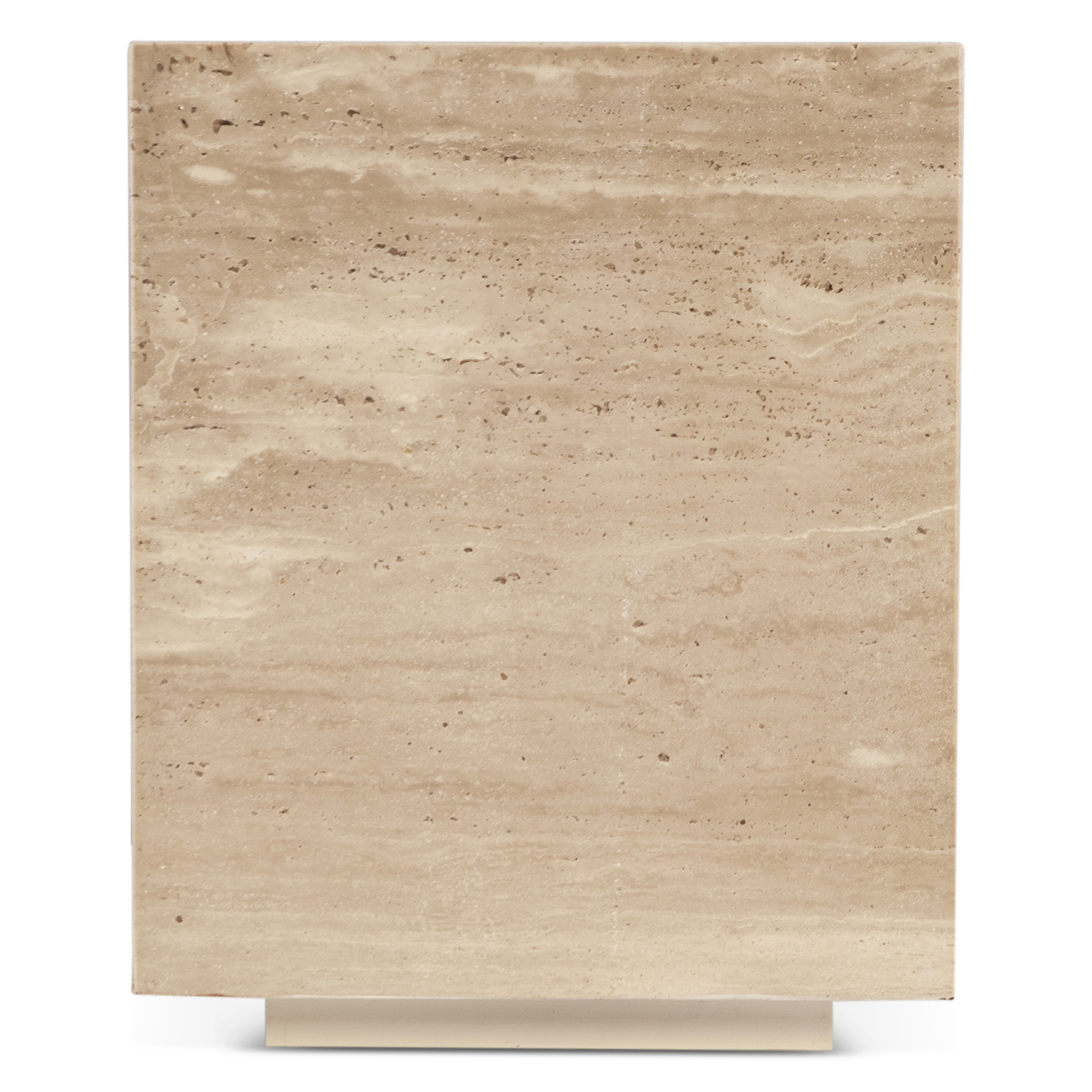 The Nile 18″ Side Table is a sculptural cube crafted entirely from solid travertine stone. With clean lines and softly honed surfaces, this piece highlights the natural textures and tonal variations of the stone, offering a refined yet grounded aesthetic. Its geometric form and substantial weight make it a striking standalone accent or functional table. Ideal for layered, modern interiors curated by designers and trade professionals.Travertine features natural pitting, surface variation, and soft veining. No two pieces are alike‚Äîexpect tonal shifts from ivory to taupe that highlight the stone‚Äôs authentic, organic character.