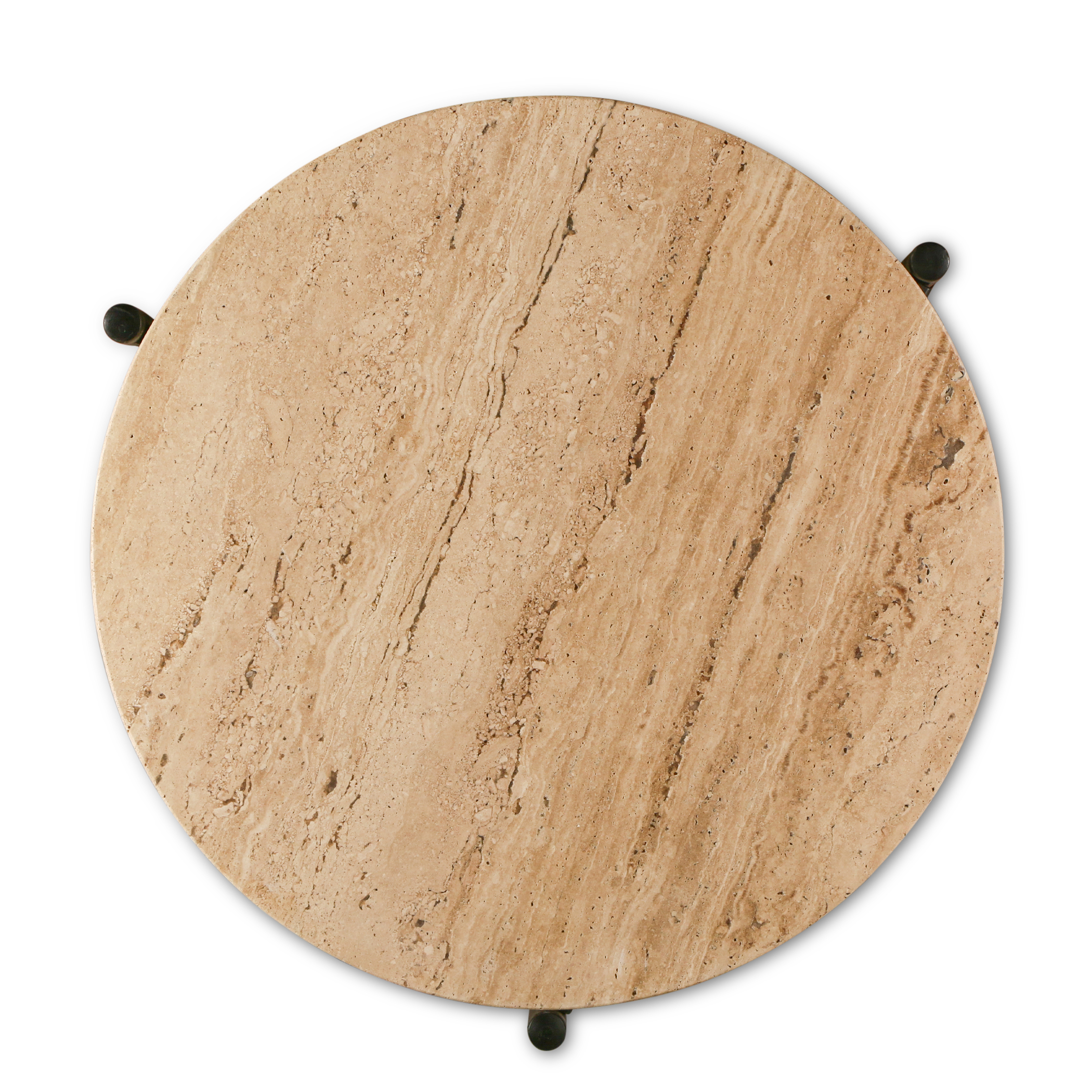 Nola 18″ Side Table Table in Travertine Stone and Iron