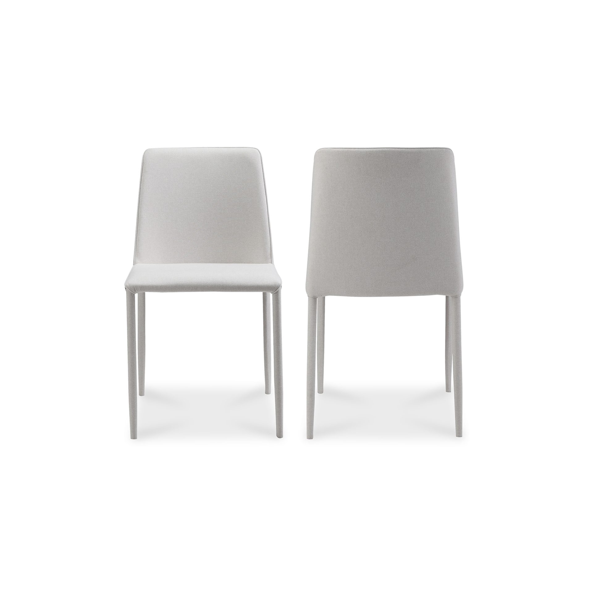 Pure, elegant simplicity defined. The Nora dining chair’s single shade of color blocking adds a touch of fine dining to any living space. An iron frame is covered in white fabric, both aesthetically pleasing and soft to the touch, while its square shape and minimal construction provide a beautiful contemporary design. For both casual and formal affairs, the Nora dining chair is a must-have.