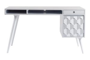 Designed with versatility in mind, the O2 Desk features one large drawer suitable for legal-size documents that can be easily positioned on either the left or right side, catering to individual preferences and ensuring seamless integration into any workspace. Expertly crafted with solid mango wood legs, this sophisticated work surface showcases an intricate wood pattern, elevating its aesthetic appeal and capturing the eye.