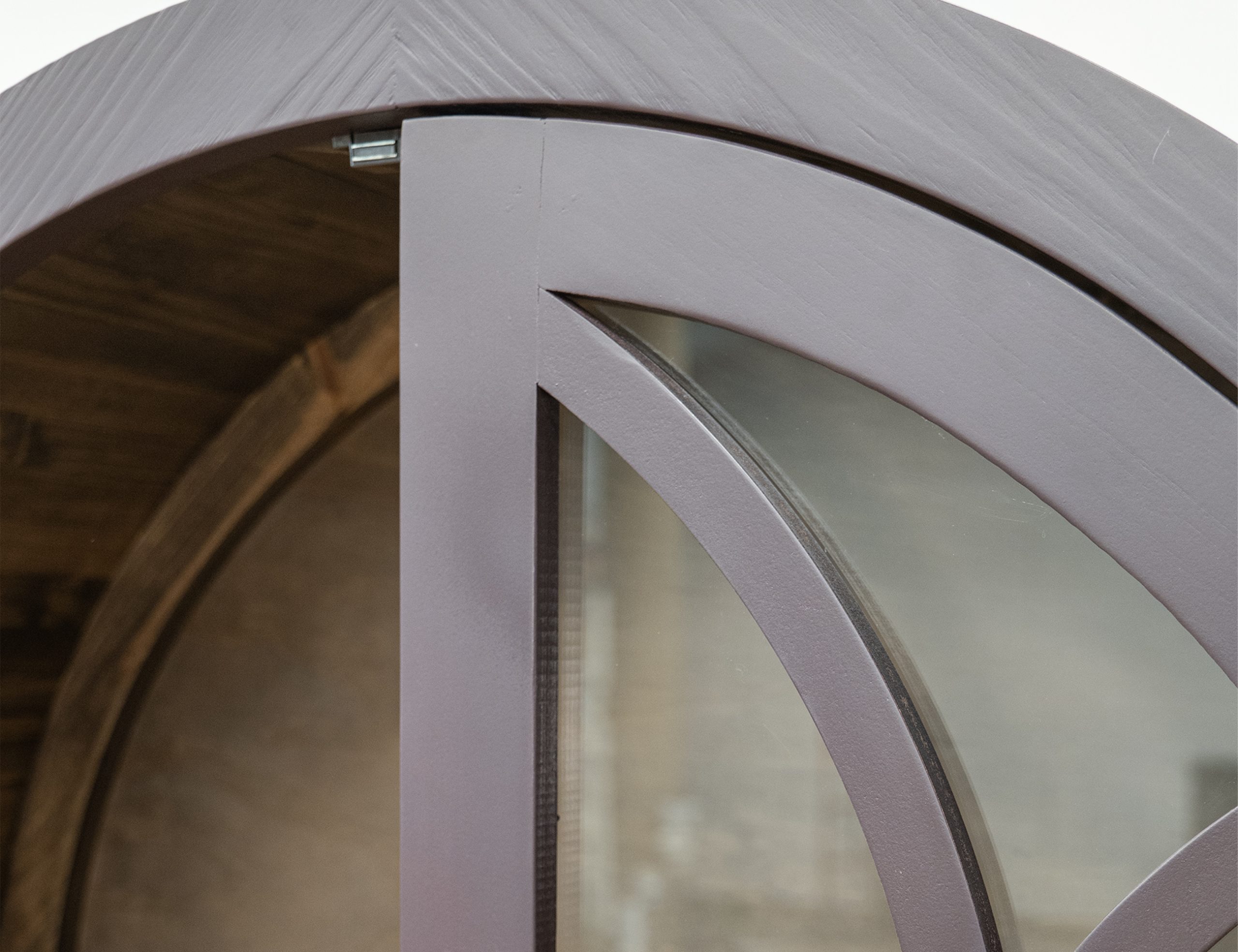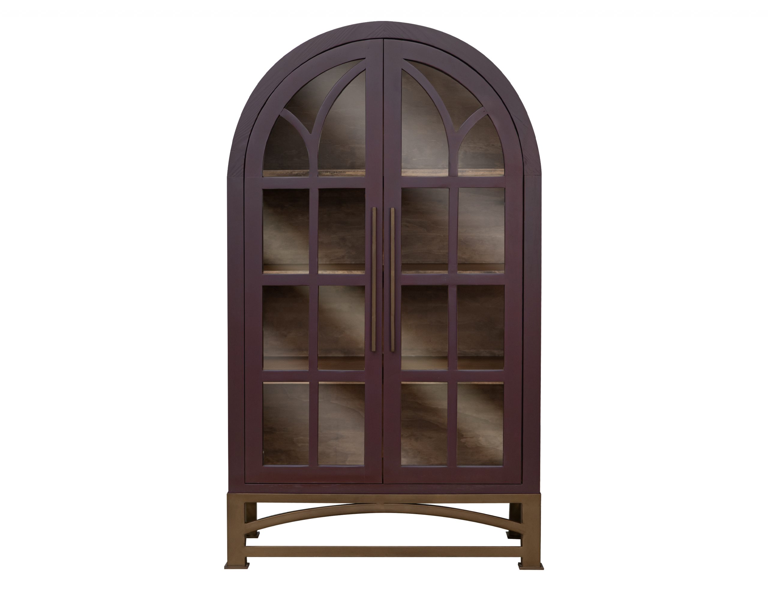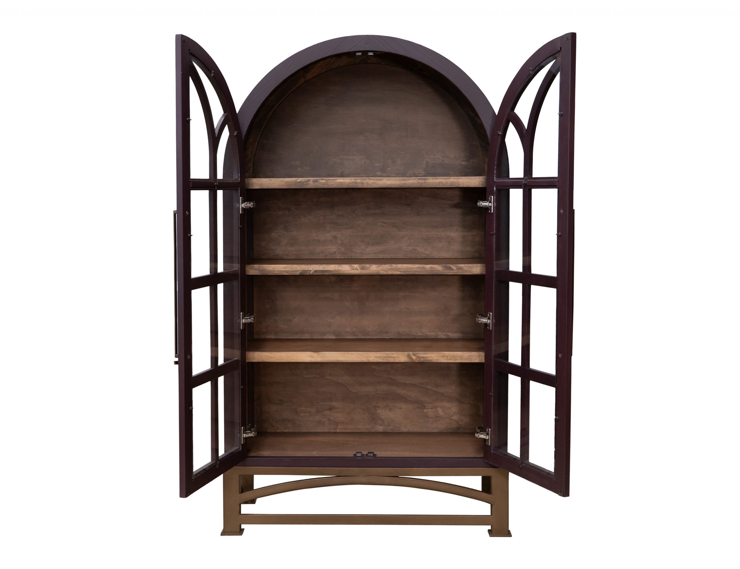 • Drawing inspiration from Mid-18th century French furniture, our Obsidian cabinets seamlessly blend the charm of the old world with contemporary design. Crafted from lightly distressed pine wood and elegantly set within a metal base, this cabinet features a beautifully paneled oval glass door, making it a timeless addition to your home.