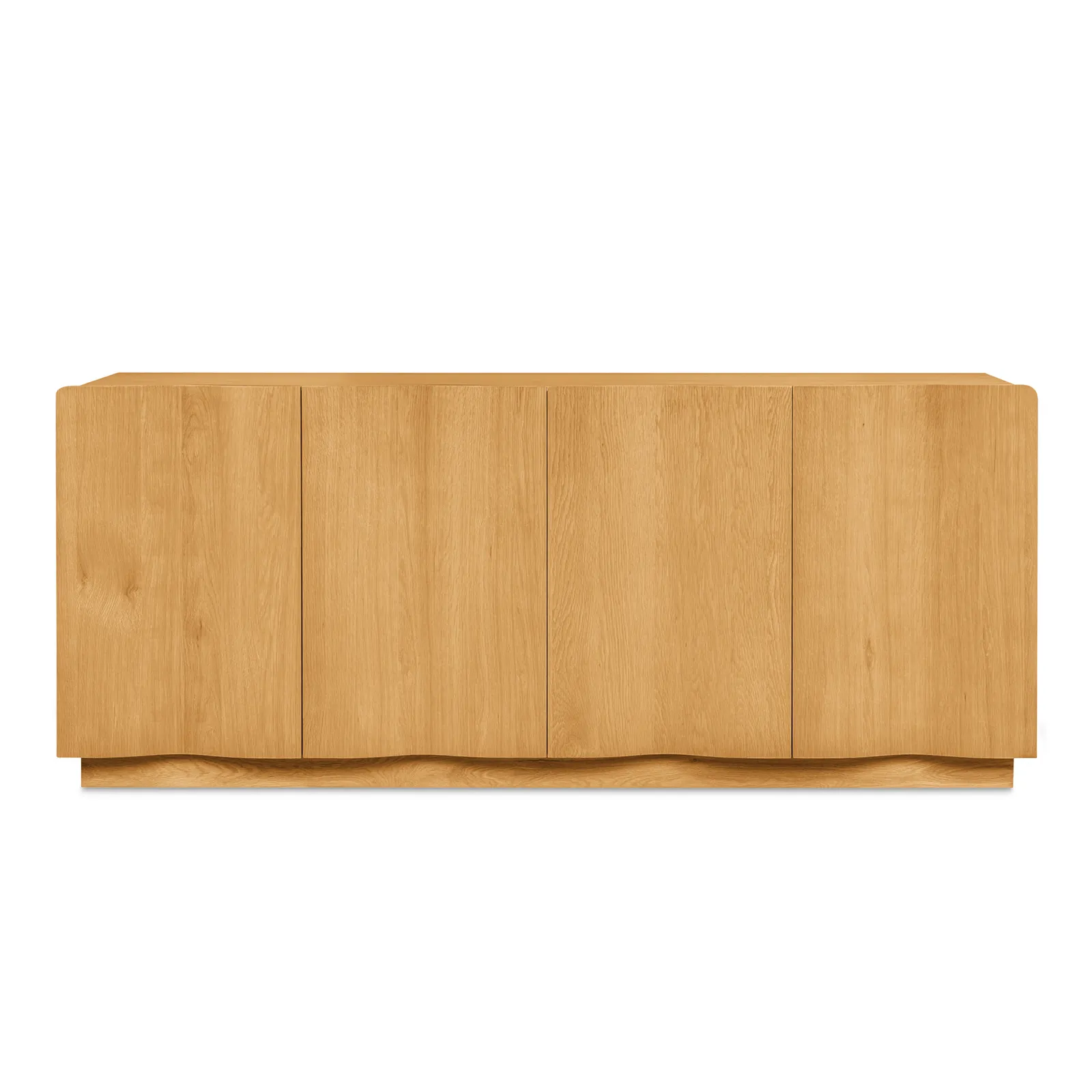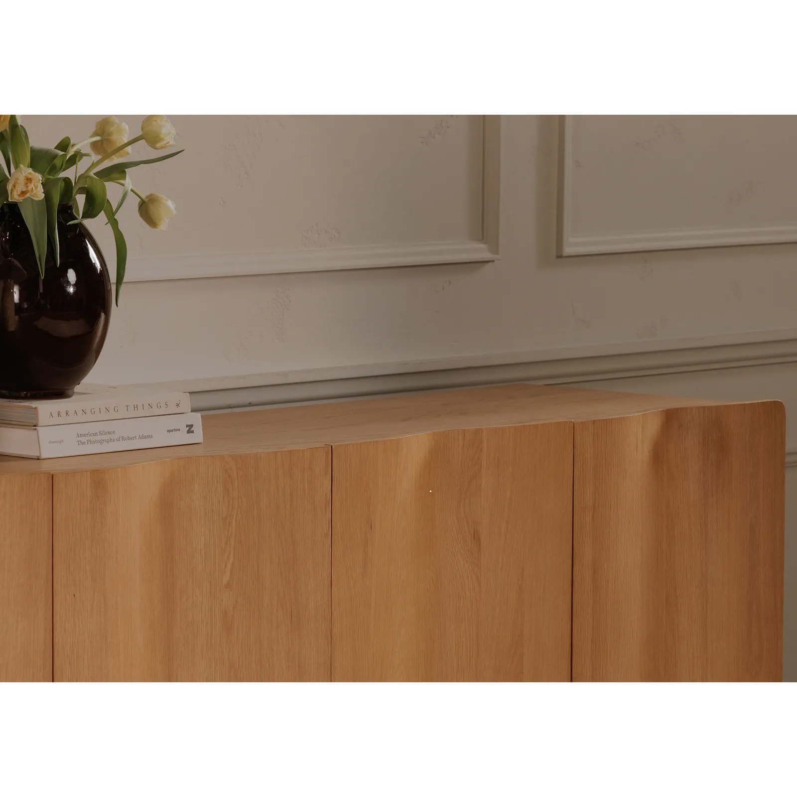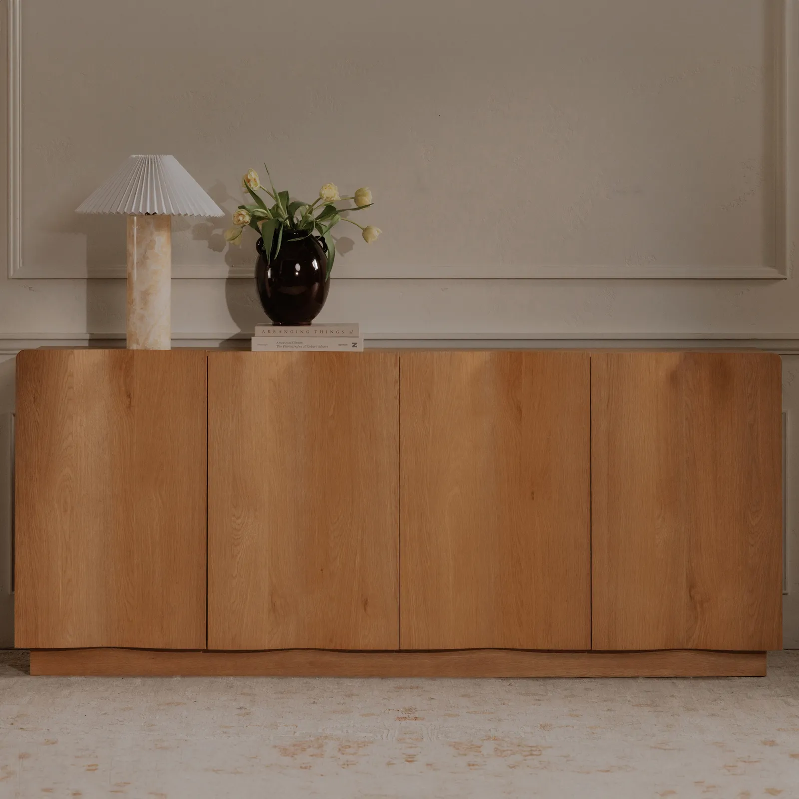 Inspired by nature’s fluid artistry, the Ocean sideboard brings serene beauty to the living space. Gracefully curved front doors cascade over the sides, evoking wind-shaped sand dunes. This flowing silhouette contrasts elegantly with the sleek body and recessed base.