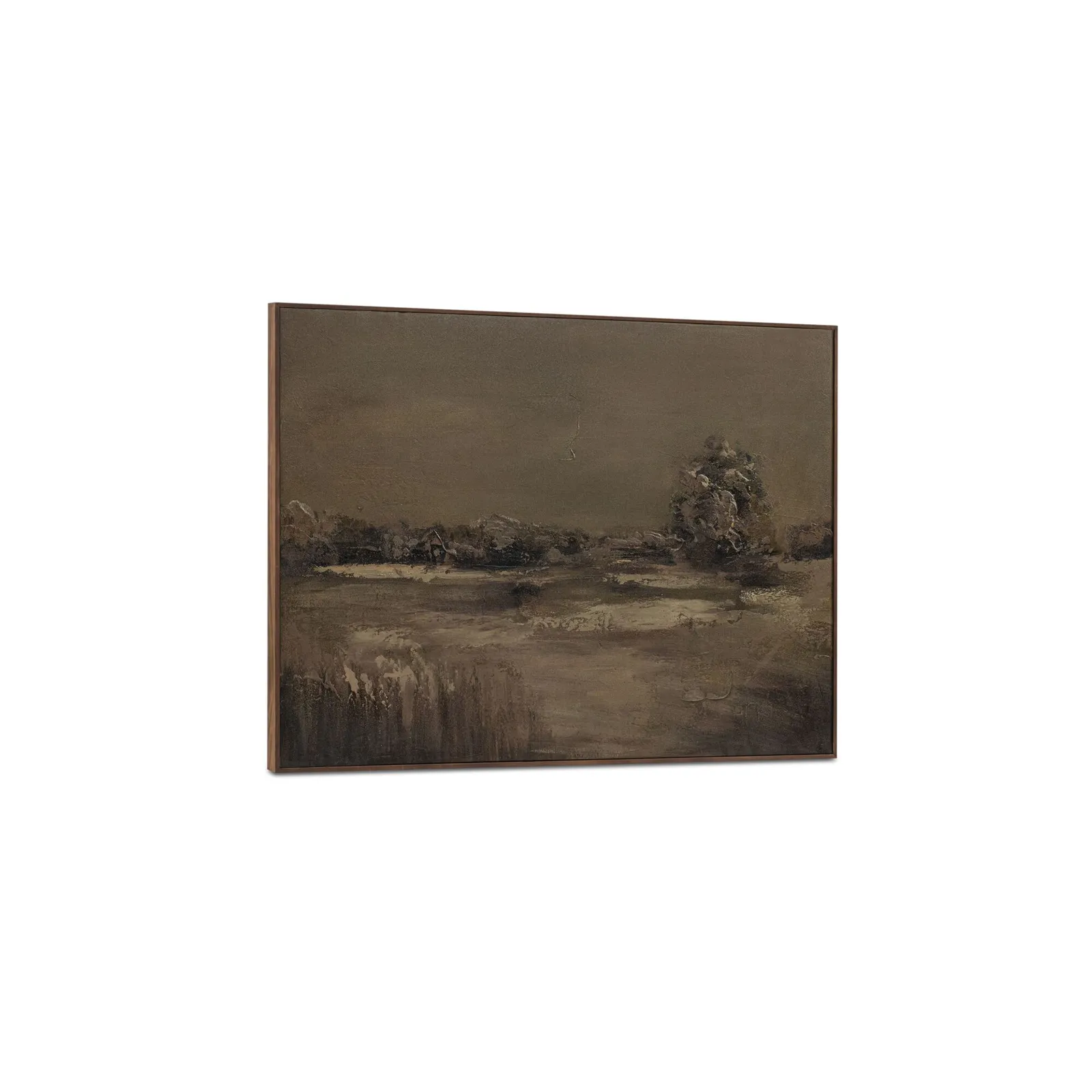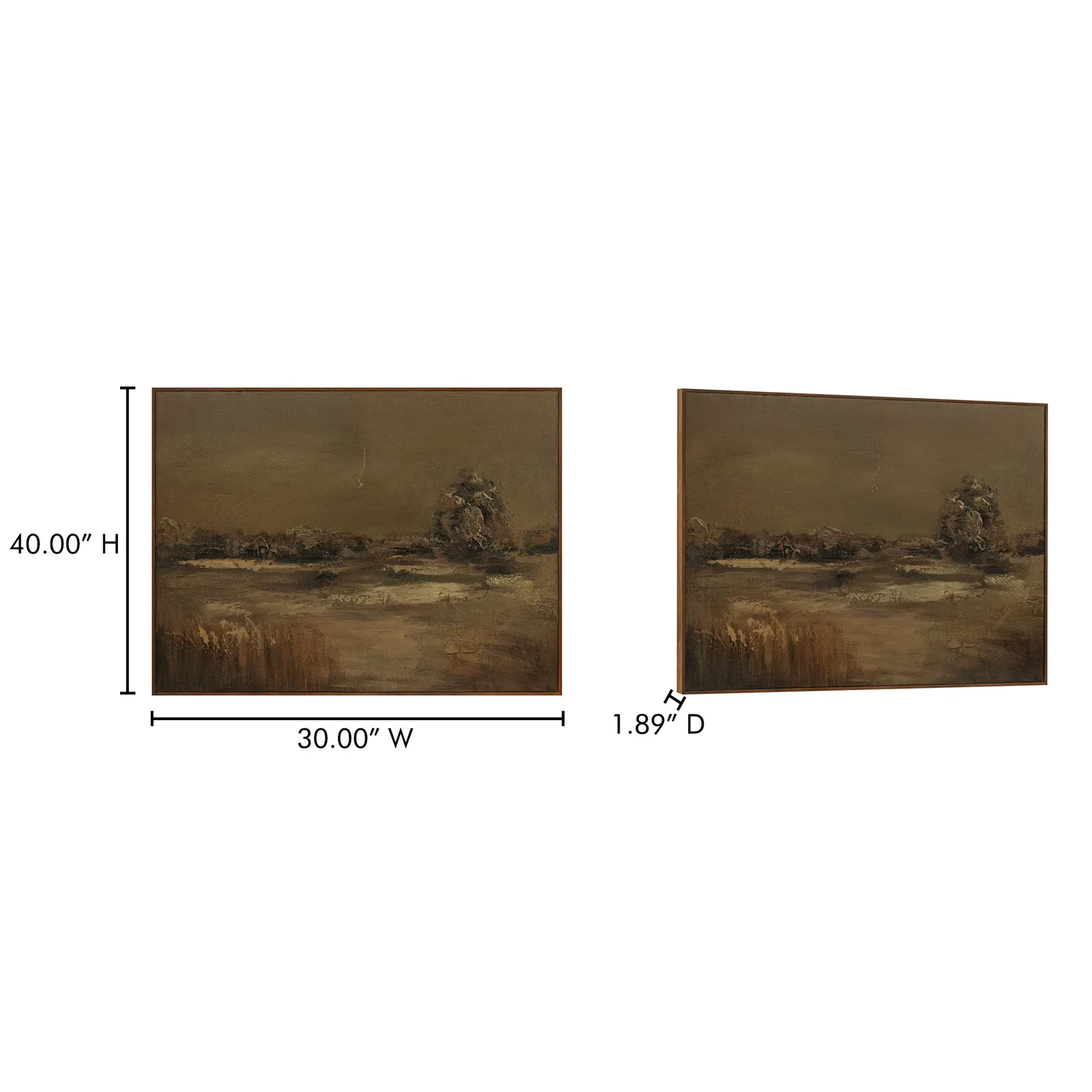 The Ode framed painting is a lyrical celebration of the countryside, blending verdant tones with an air of mystery. Its eternal, understated elegance and tonal palette evoke a warm, heritage feel, while the textured layers of acrylic paint suggest a depth that invites introspection.