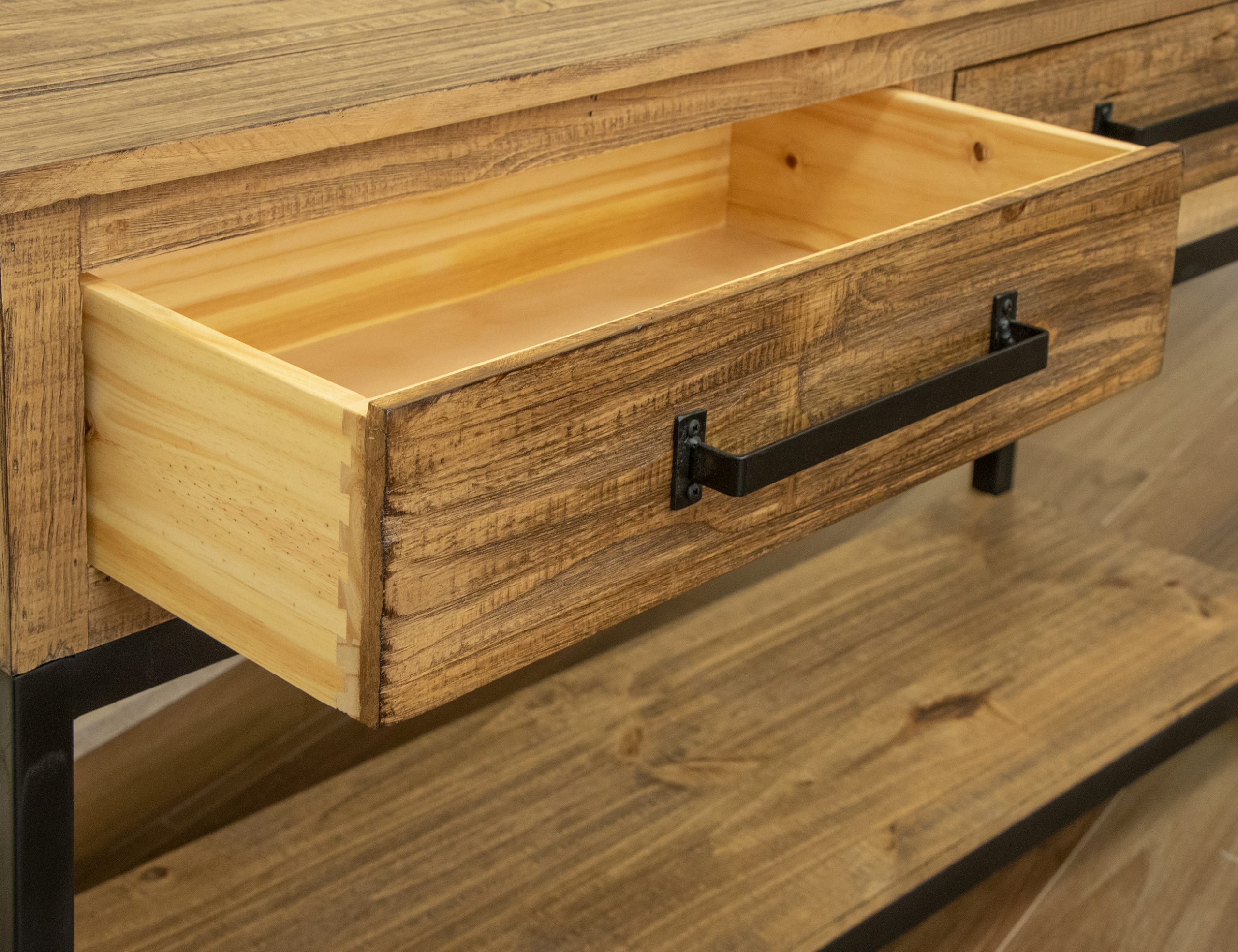 • Introducing the Olivo Collection, a blend of rustic and industrial designs. Elevate any room with this collection, finished in a neutral brown tone on wire-brushed pine wood. The collection features stunning handwrought bases in black with a non-chip black finish.