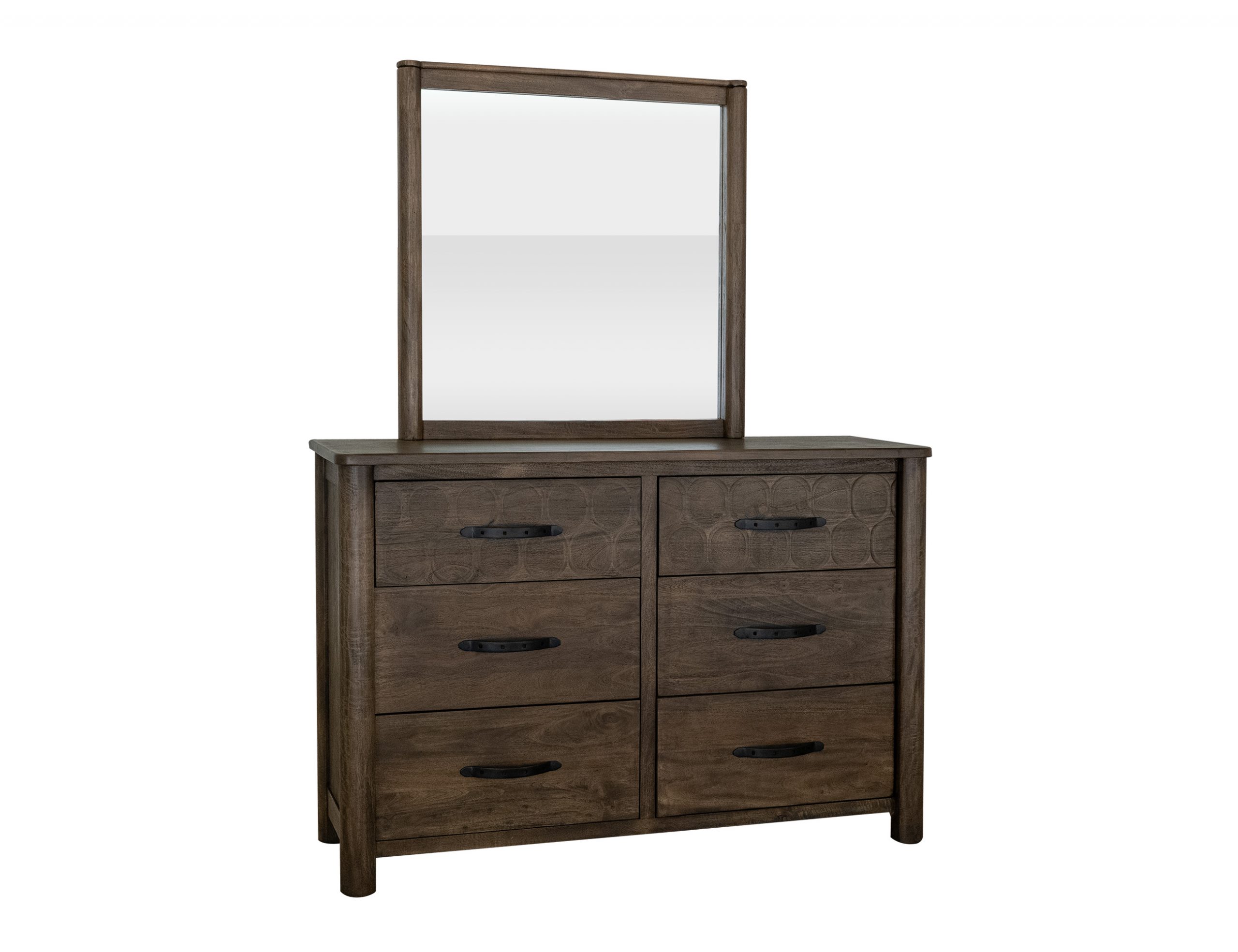 • Presenting the Oregon Ranch bedroom collection, showcasing a distinctive design on its front panels highlighting the natural wood grain, conveying a sense of warmth and style.