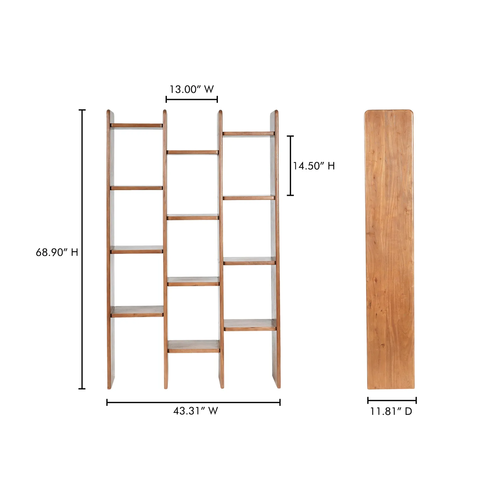 Round corners in a rich brown tone exude warmth and elegance in the Orson bookcase. Crafted from durable solid Acacia wood, this bookcase is both long-lasting and easy to maintain, while 12 shelves add effortless functionality.