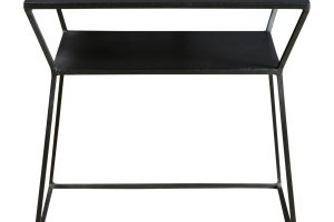 The Osaka Side Table features a solid metal construction with a matt-black finish, ideal for small spaces.