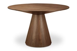 Nestled on top of a walnut pedestal, the Otago Table features clean lines and a contemporary modern style that will brighten up your dining area with its warm hues and circular design. A polished walnut veneer completes this table’s seamless look.
