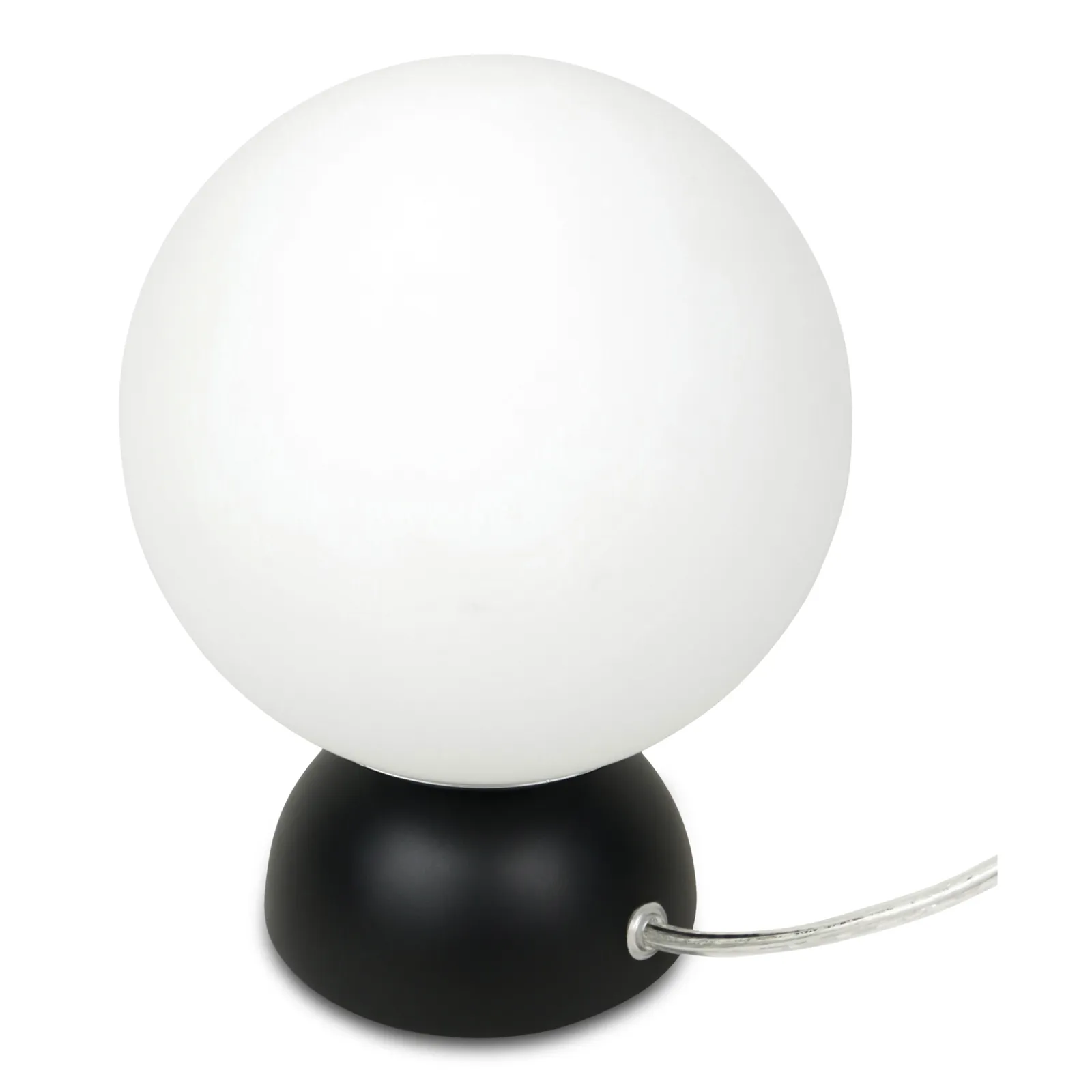 The Ovi table lamp artfully blends mid-century charm with contemporary elegance. An opal glass globe diffuses soft, ambient light, while sleek chrome accents add a touch of sophistication. The sculpted resin base, finished in lustrous color, offers striking contrast and visual intrigue.