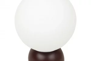 The Ovi table lamp artfully blends mid-century charm with contemporary elegance. An opal glass globe diffuses soft, ambient light, while sleek chrome accents add a touch of sophistication. The sculpted resin base, finished in lustrous color, offers striking contrast and visual intrigue.