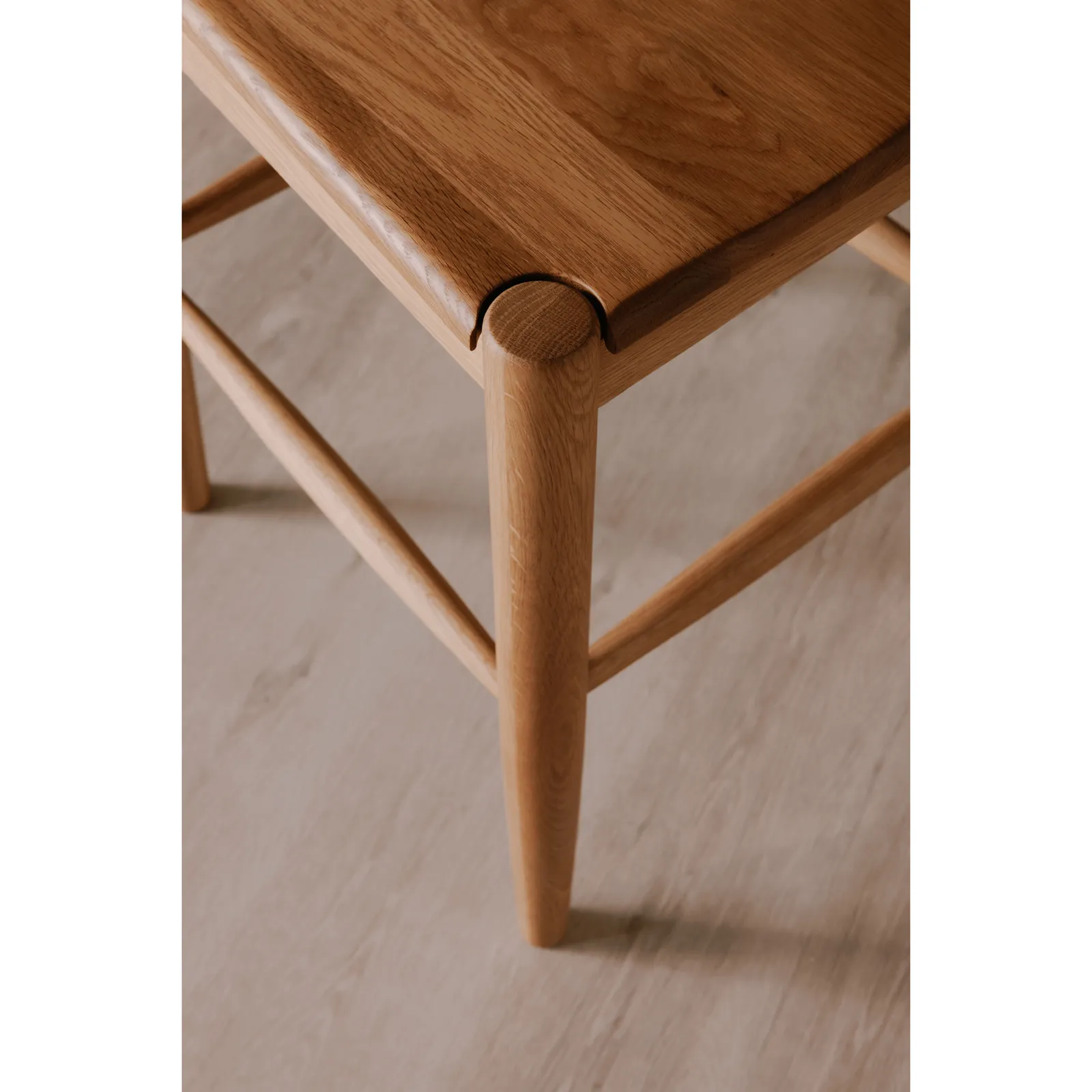Available in oak, the Owing counter stool is a refined spin on the traditional. Its mid-height, curved, open-back design combines comfort with casual appeal, while its solid wood frame creates a timeless, mid-century silhouette.