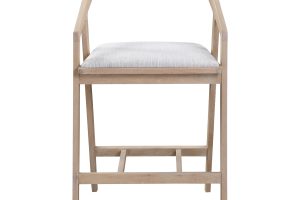 Streamlined with all the mid-century modern vibes you can settle right into, the Padma counter stool brings ultimate comfort with its supportive backrest, casual footrest, and sloped arm design. Clean lines meet sleek, minimalist form with its white oak frame, flared back leg, and tonal fabric. An ideal, versatile addition to have float around your kitchen counter or social space.