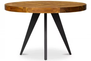 Striking and lively, Parq’s natural beauty and rustic style add visual intrigue to even the most coziest dining spaces. The distressed semi-gloss amber finish of solid acacia energizes, while the 60 inch rounded top floats over angled legs. Comfortably seating four, Parq is the perfect dining table for intimate interiors.