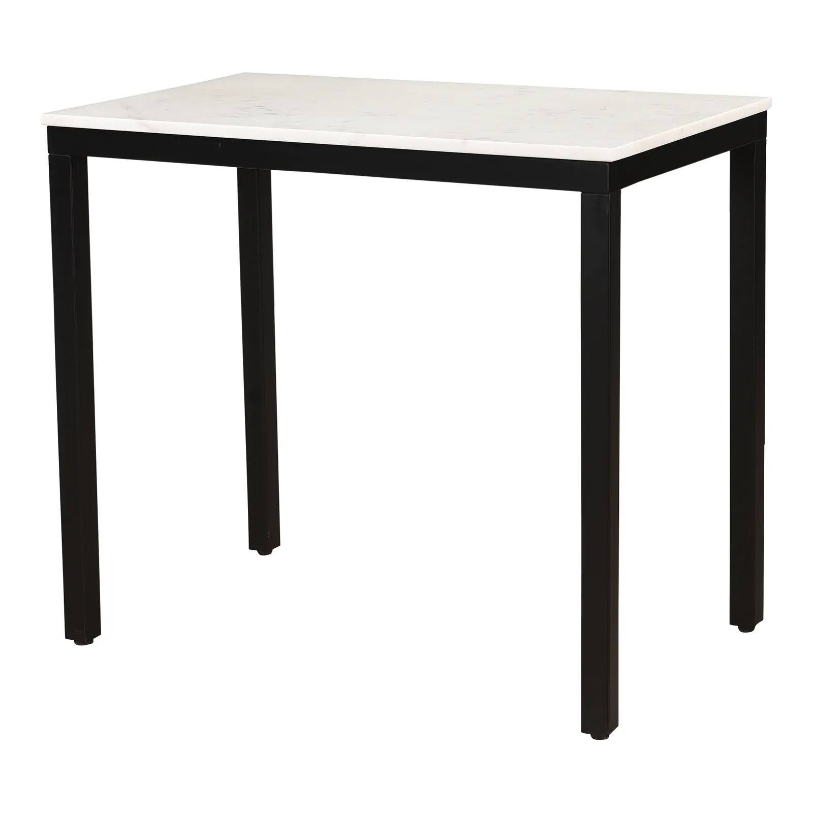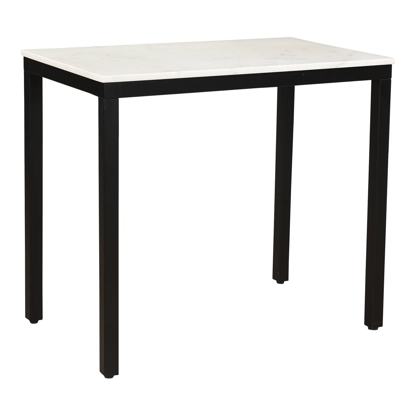 - White Banswara marble top with an MDF layer under the marble to help prevent cracking & a powder-coated iron frame
