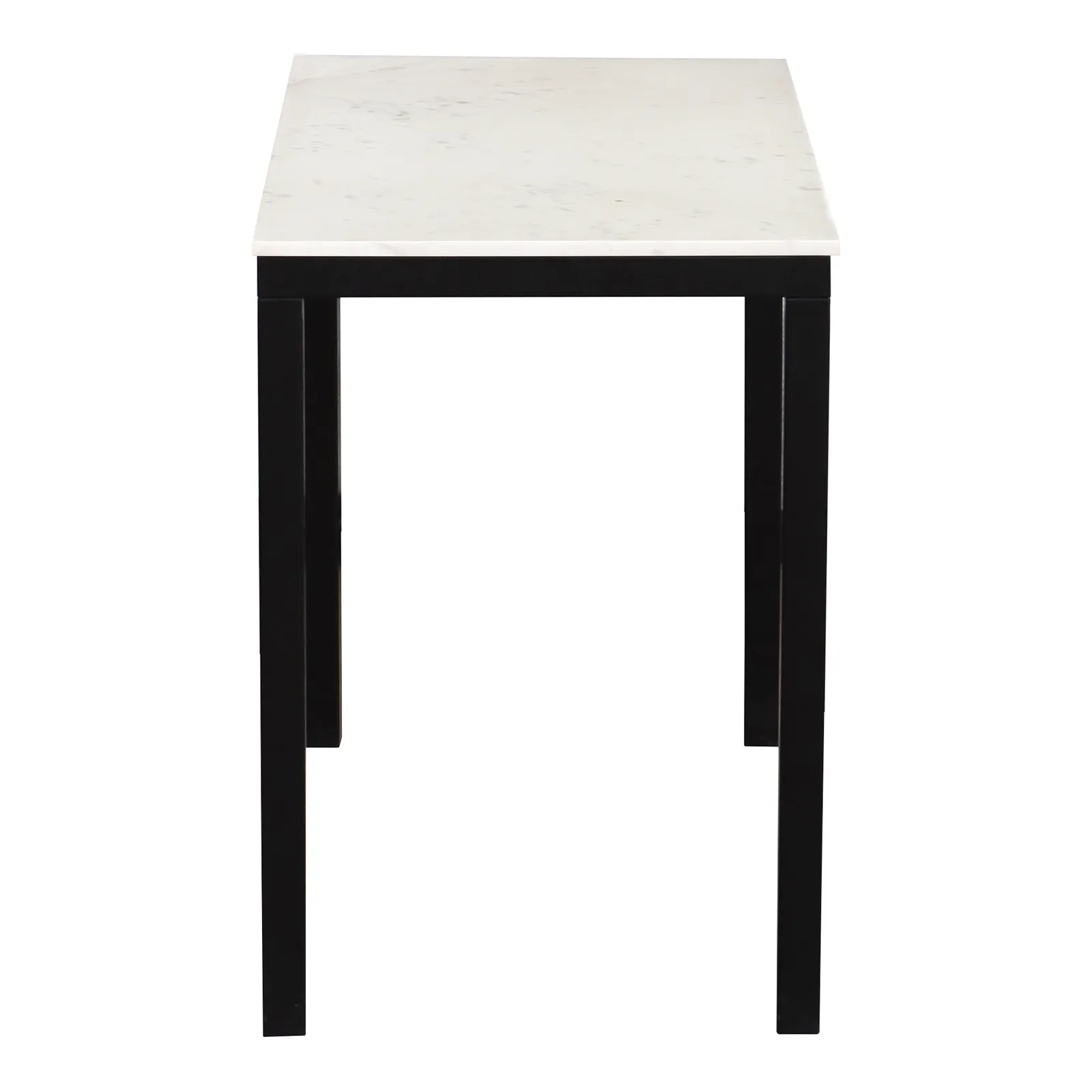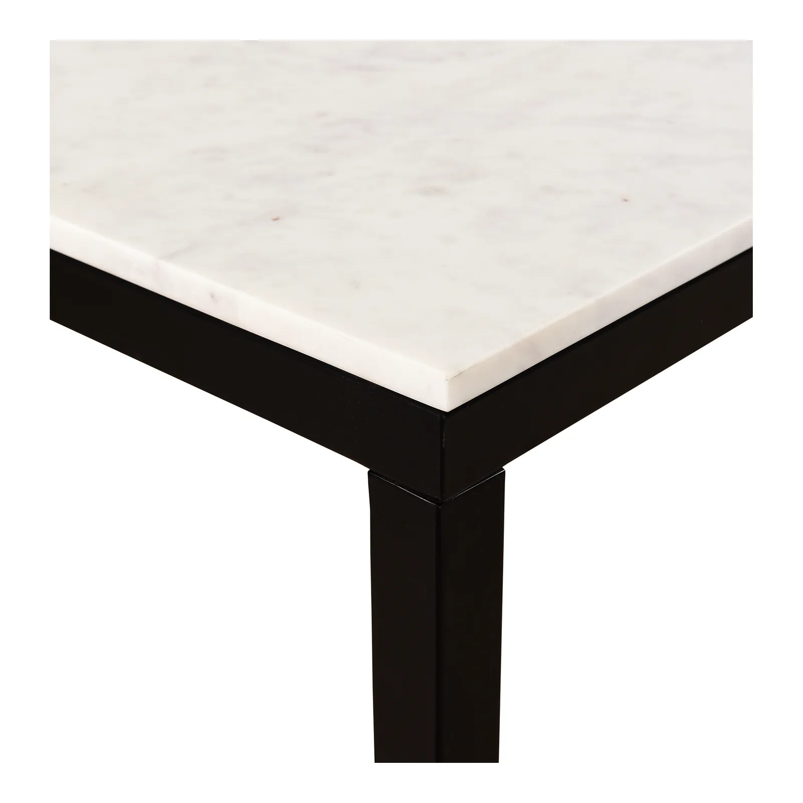 A simple, contemporary design that works in small spaces, the Parson marble mini desk focuses on mixed material, pairing a natural white Banswara marble top with a sleek black powder-coated iron frame. Whether as a work desk or for display, the beauty of natural marble takes center stage with each piece’s unique color variation and veining as narrow clean lines promote open space and lightness.